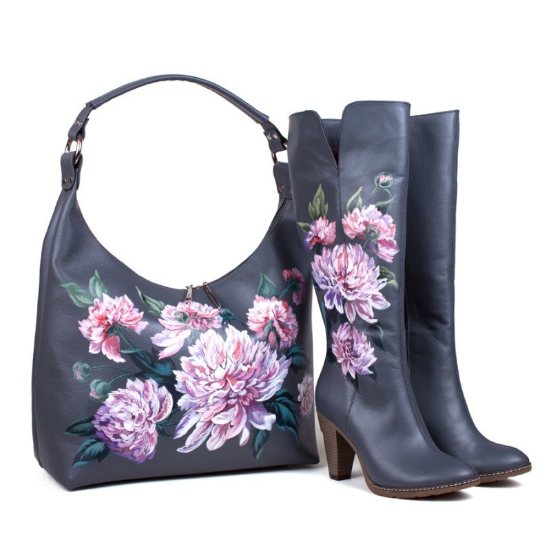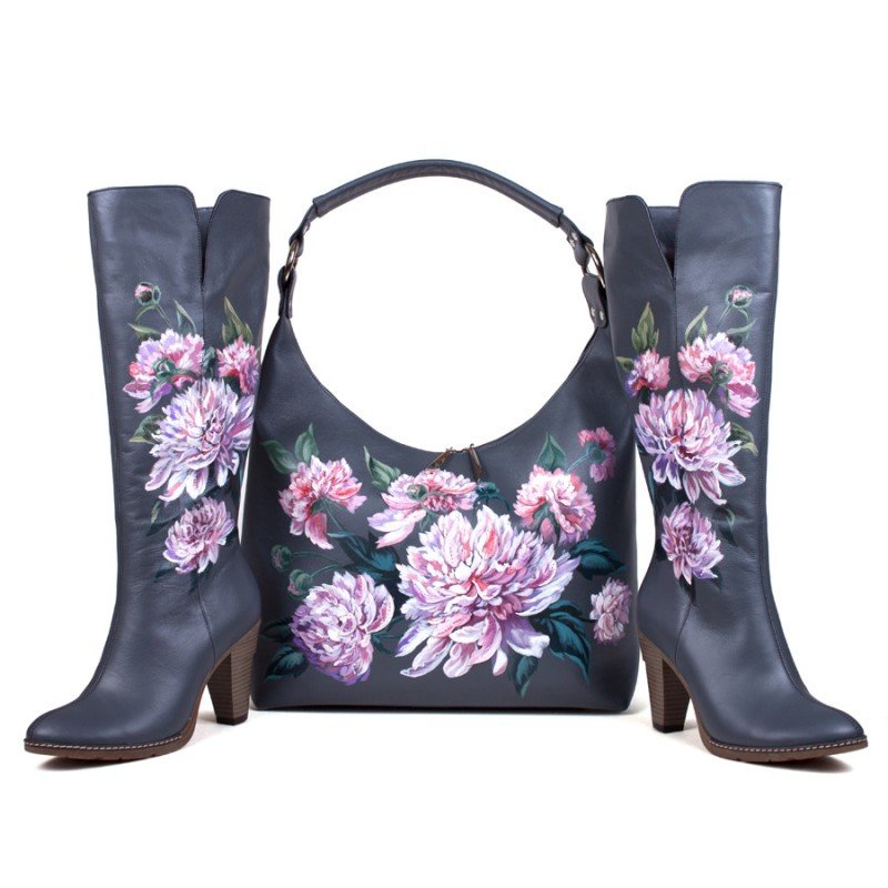 Комплект сапоги и сумка-баул "Пионы" — набор сумка и туфли, рюкзак и сапоги с рисунком ручной работы | Купить в Sumnizza
