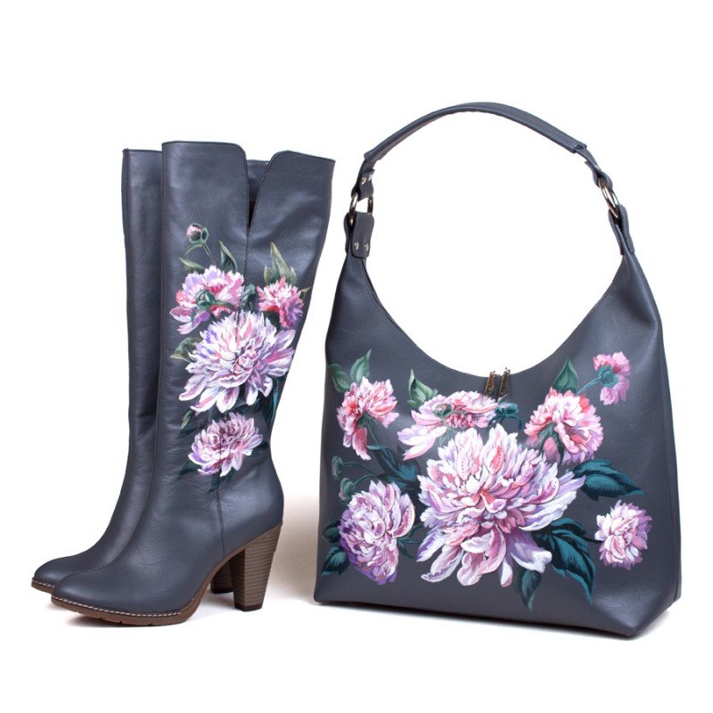 Модные кожаные женские комплекты из сумки и сапог с рисунком ручной работы