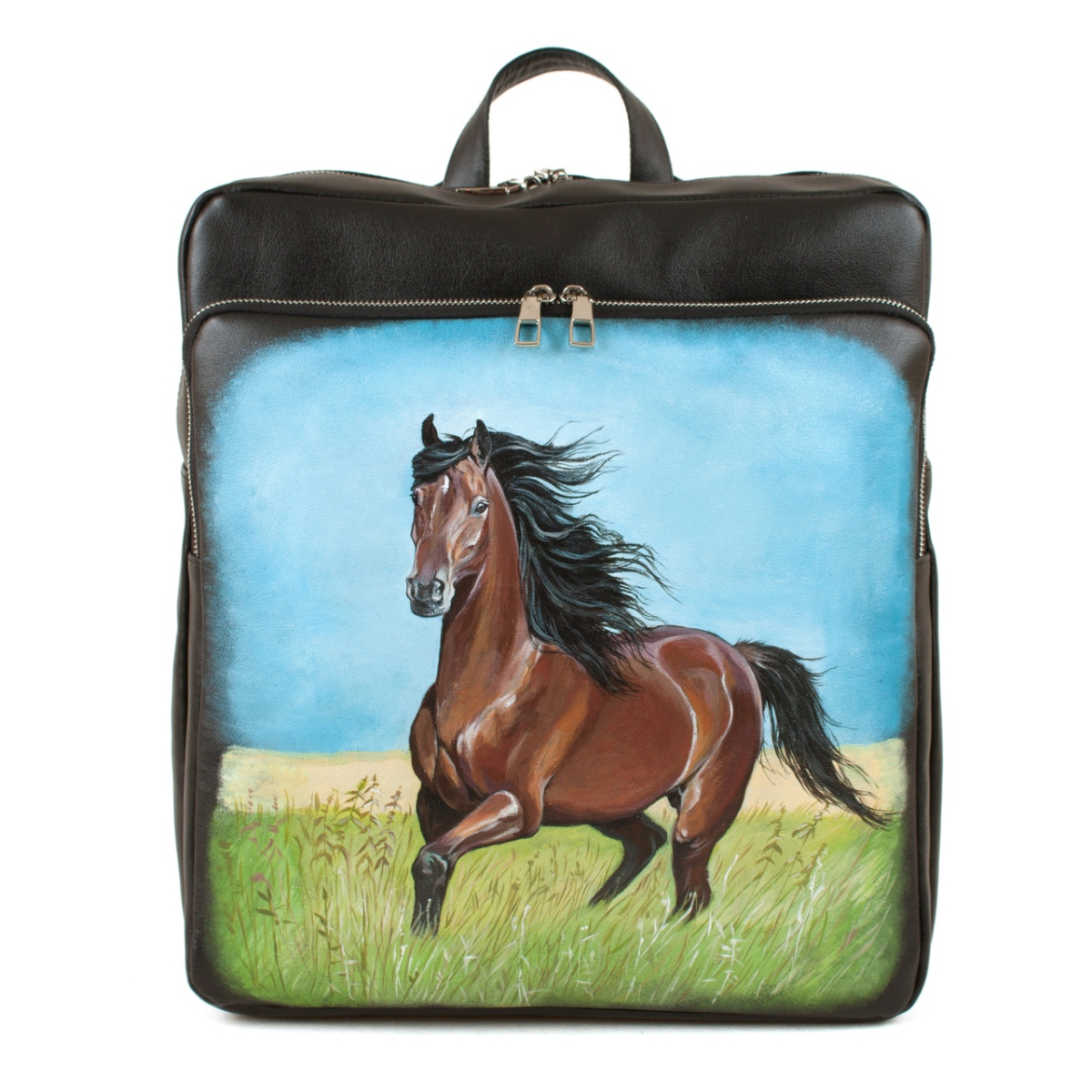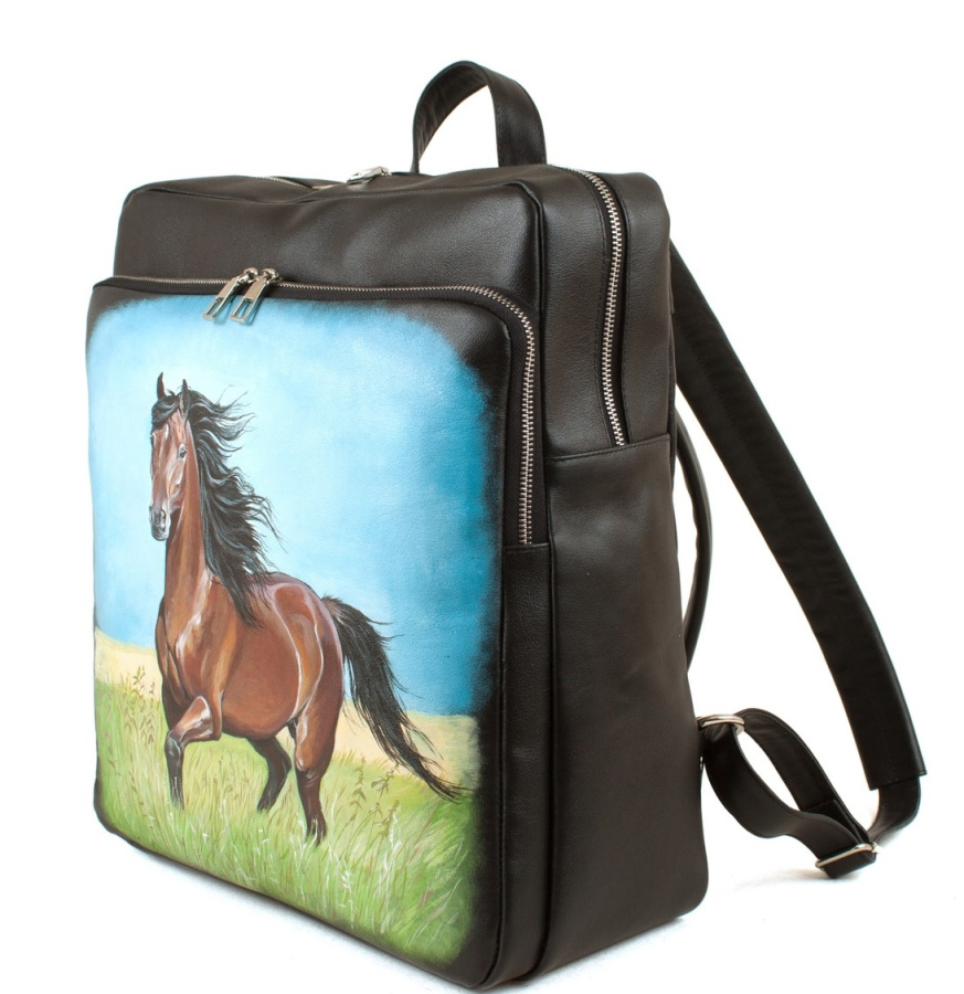 Классический мужской рюкзак с рисунком "Гнедой конь" с рисунком ручной работы на заказ | Купить в Sumnizza
