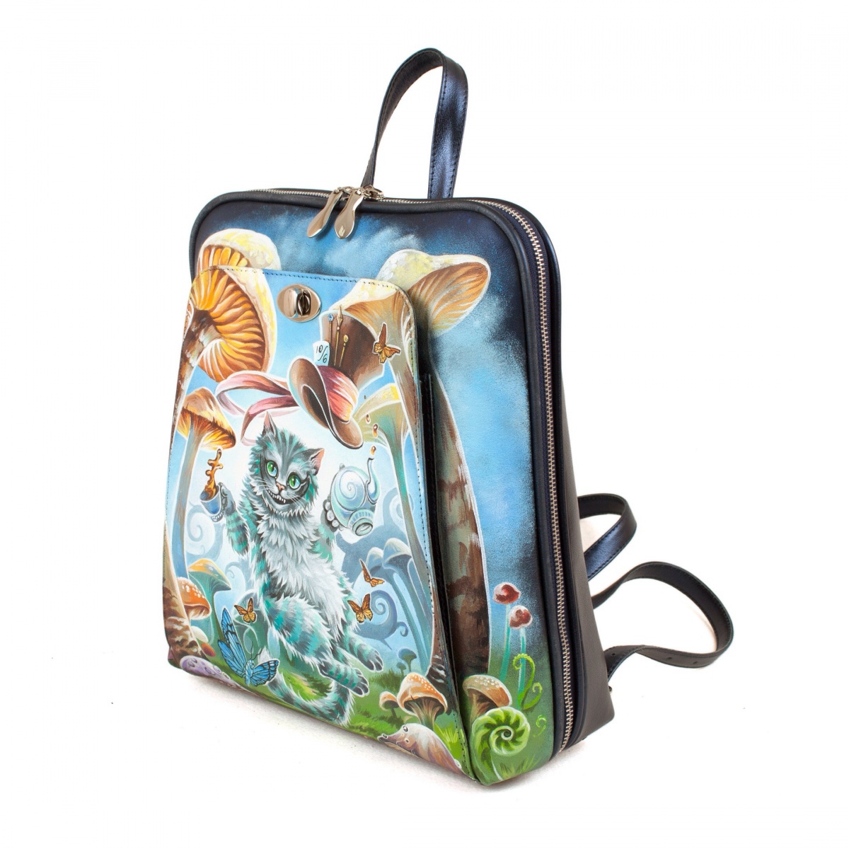 Рюкзак городской женский ручной работы с росписью "Чешир в грибах" ручной работы на заказ | Купить