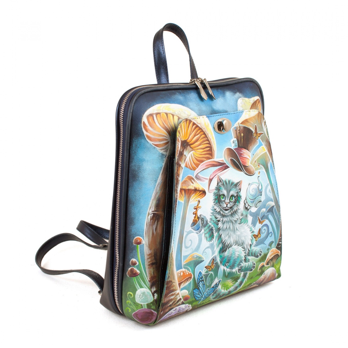 Рюкзак городской женский ручной работы с росписью "Чешир в грибах"