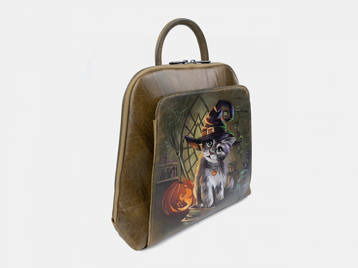 Рюкзак для повседневного использования с росписью "Котенок Halloween" ручной работы на заказ | Купить