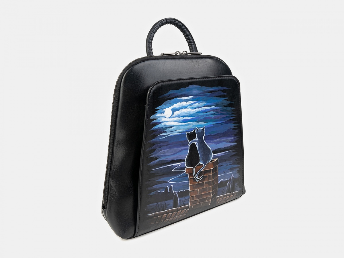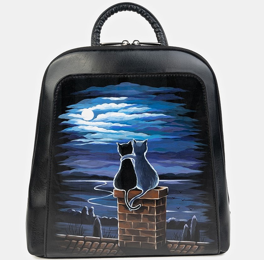 Женский рюкзак для города с рисунком по коже "Питерские коты" ручной работы с рисунком и вышивкой на заказ - Sumnizza