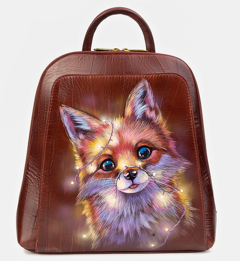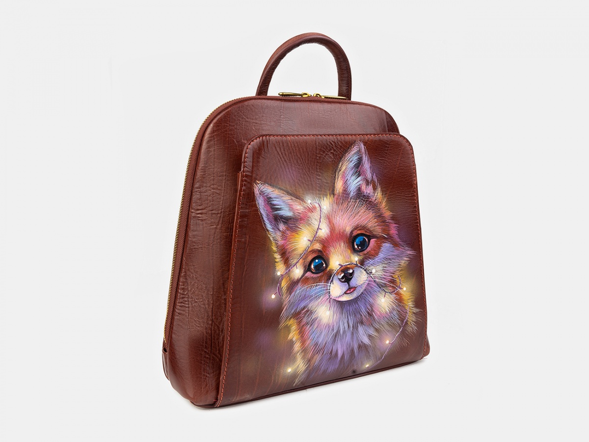 Городской рюкзак для женщин с росписью "Лисенок в гирляндах"