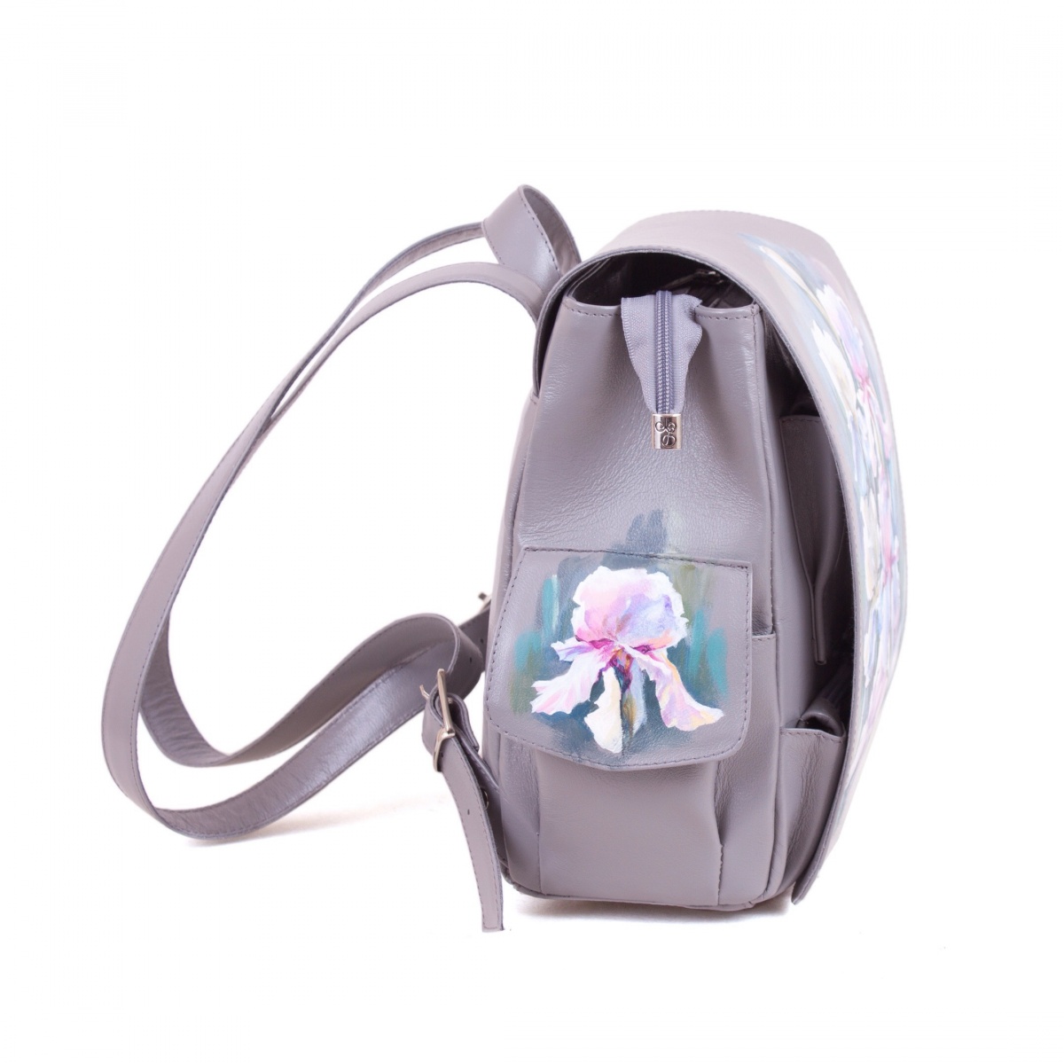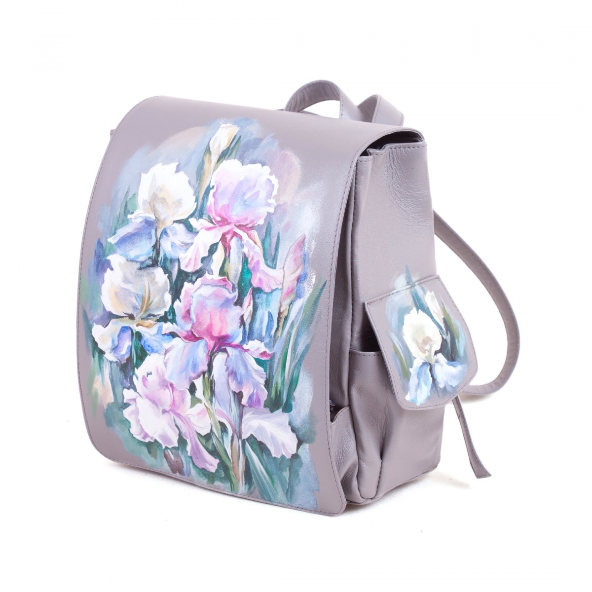 Большой женский рюкзак с росписью "Ирисы" ручной работы на заказ