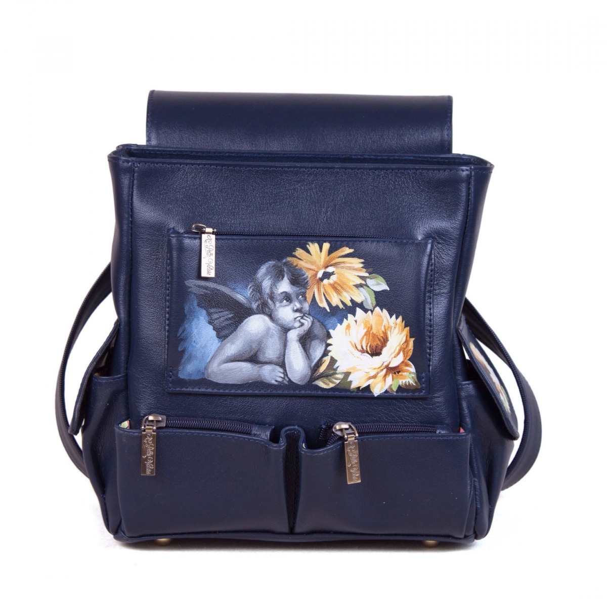 • Эксклюзивный рисунок на рюкзаке — профессиональные художники расписывают кожаные сумки акриловыми красками, как холст. Каждая роспись уникальна.