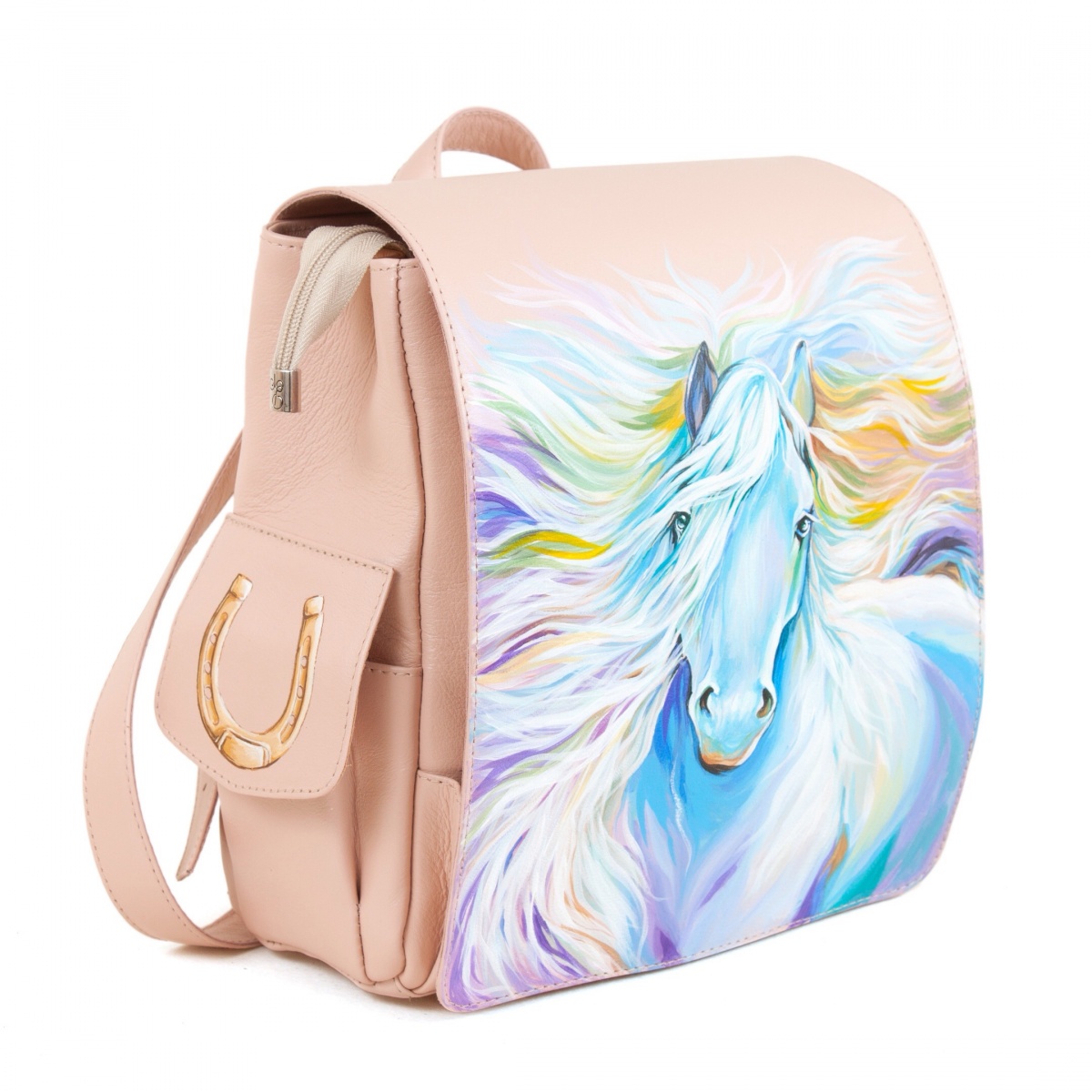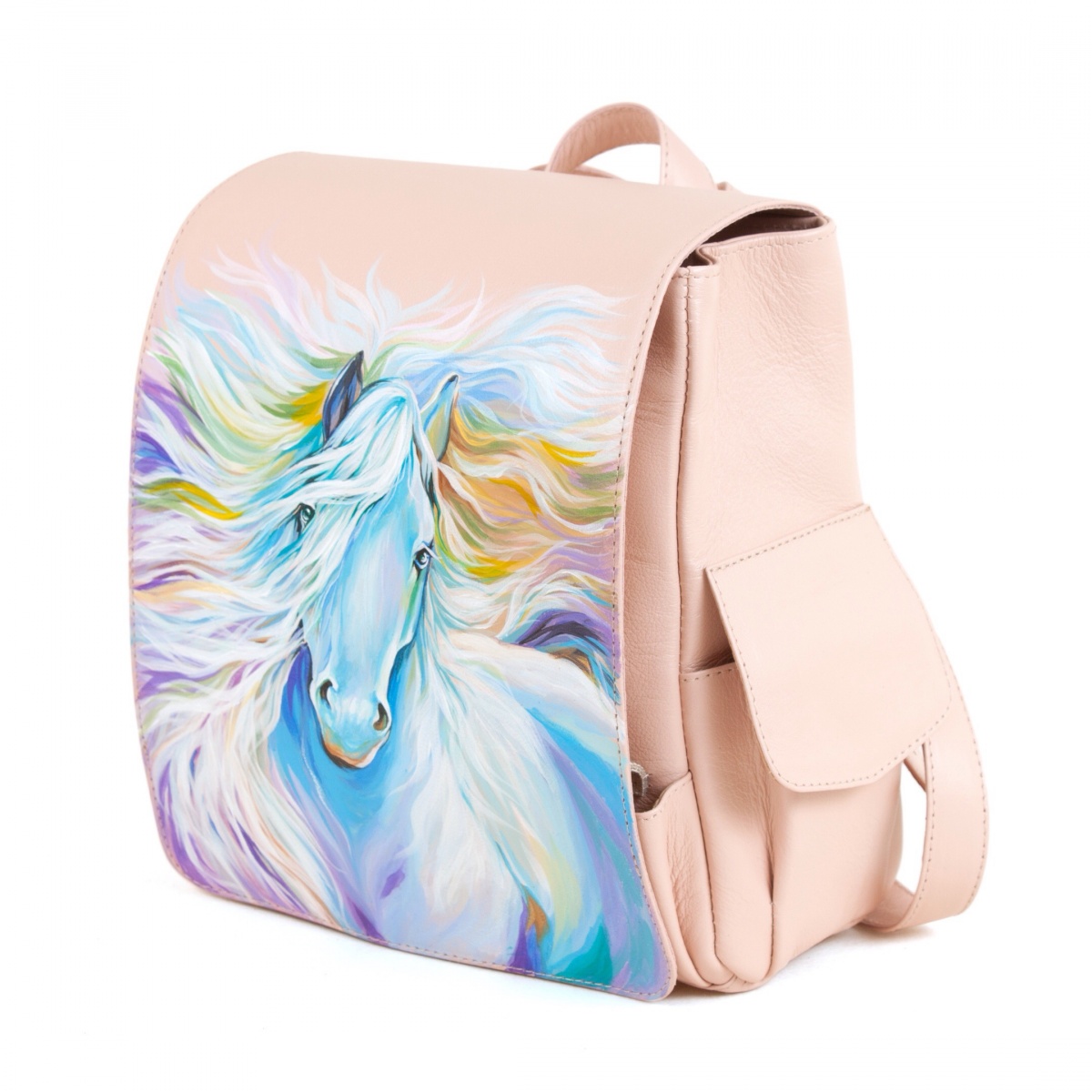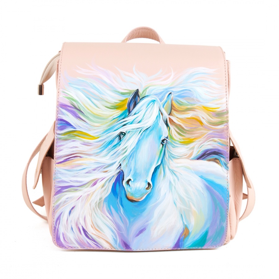 Женский рюкзак с удобными карманами и рисунком "Крылатый конь" ручной работы на заказ