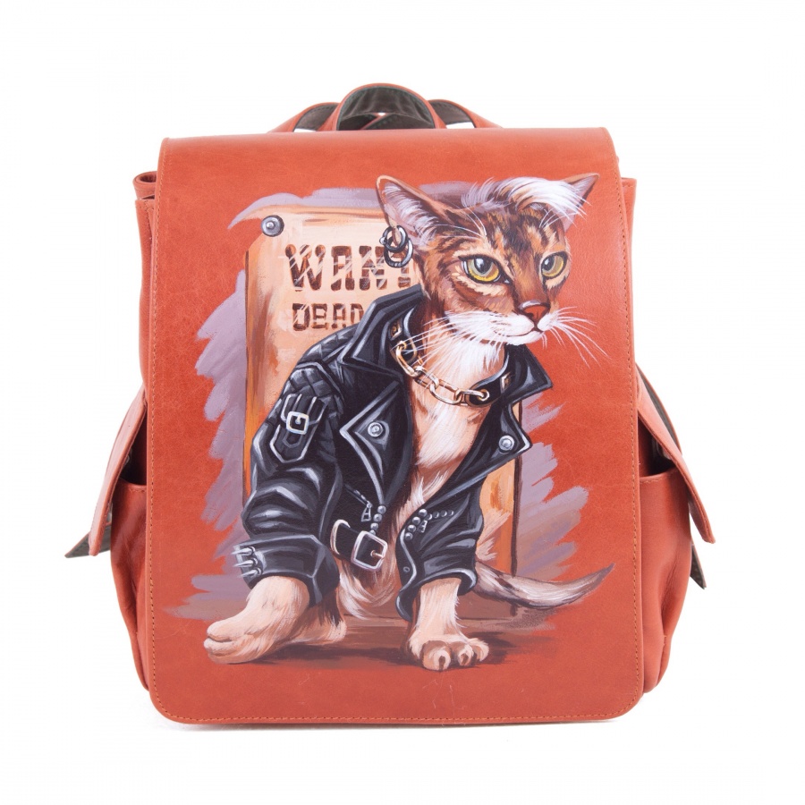 Купить Женский городской рюкзак с росписью "Кот-бандит" ручной работы на заказ