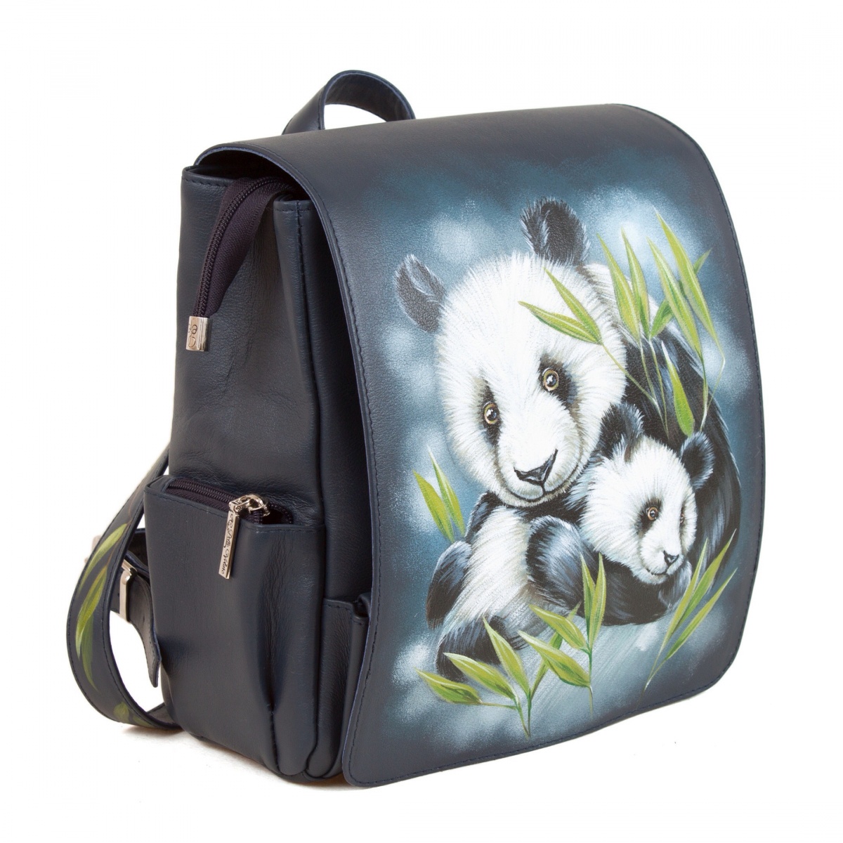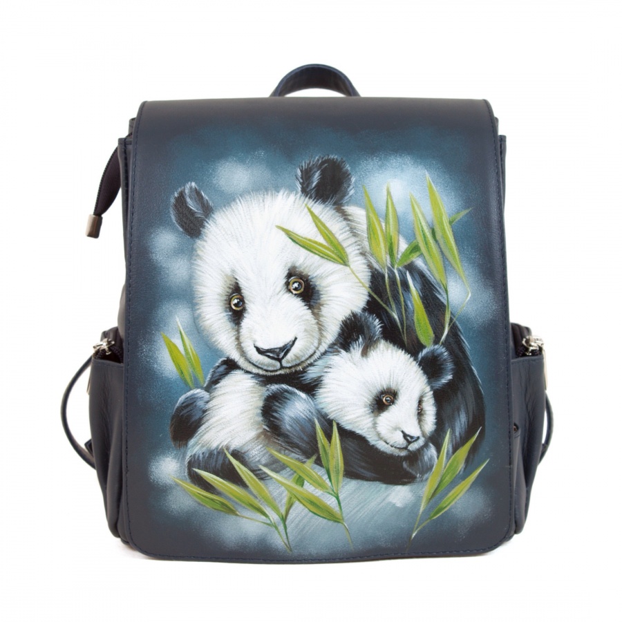Купить Женский рюкзак из кожи с росписью "Семейство пандочек" ручной работы на заказ
