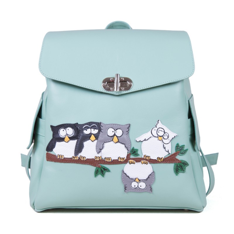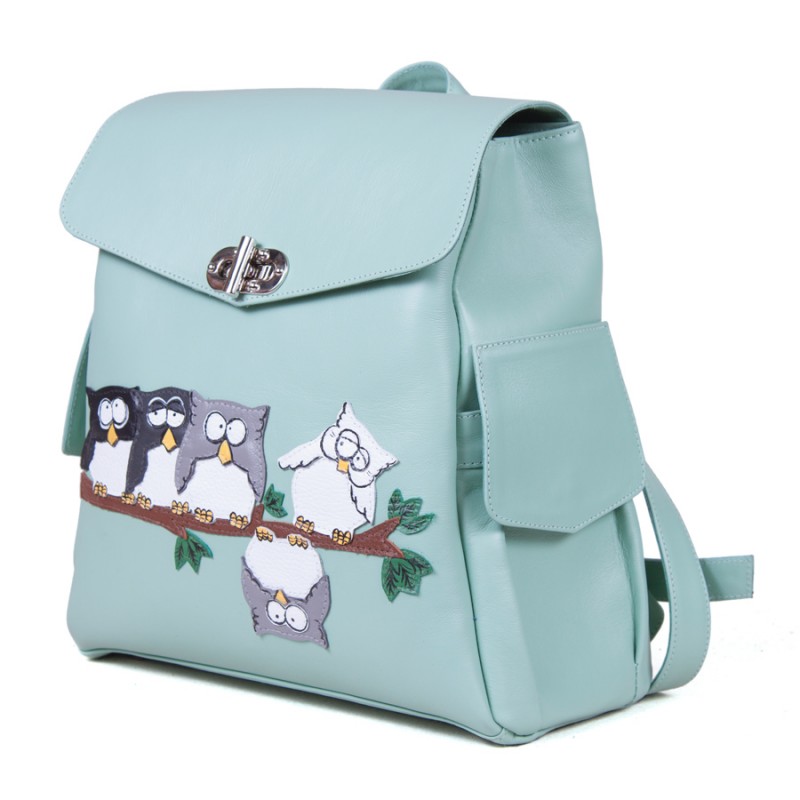 Модный рюкзак с карманами и аппликацией "Совята на ветке"
