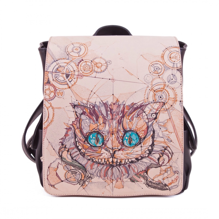 Женский рюкзак с росписью по коже "Графический Чешир"