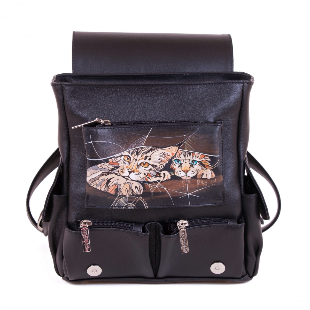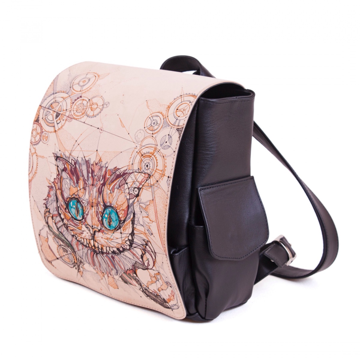 Купить Женский рюкзак с росписью по коже "Графический Чешир" ручной работы на заказ