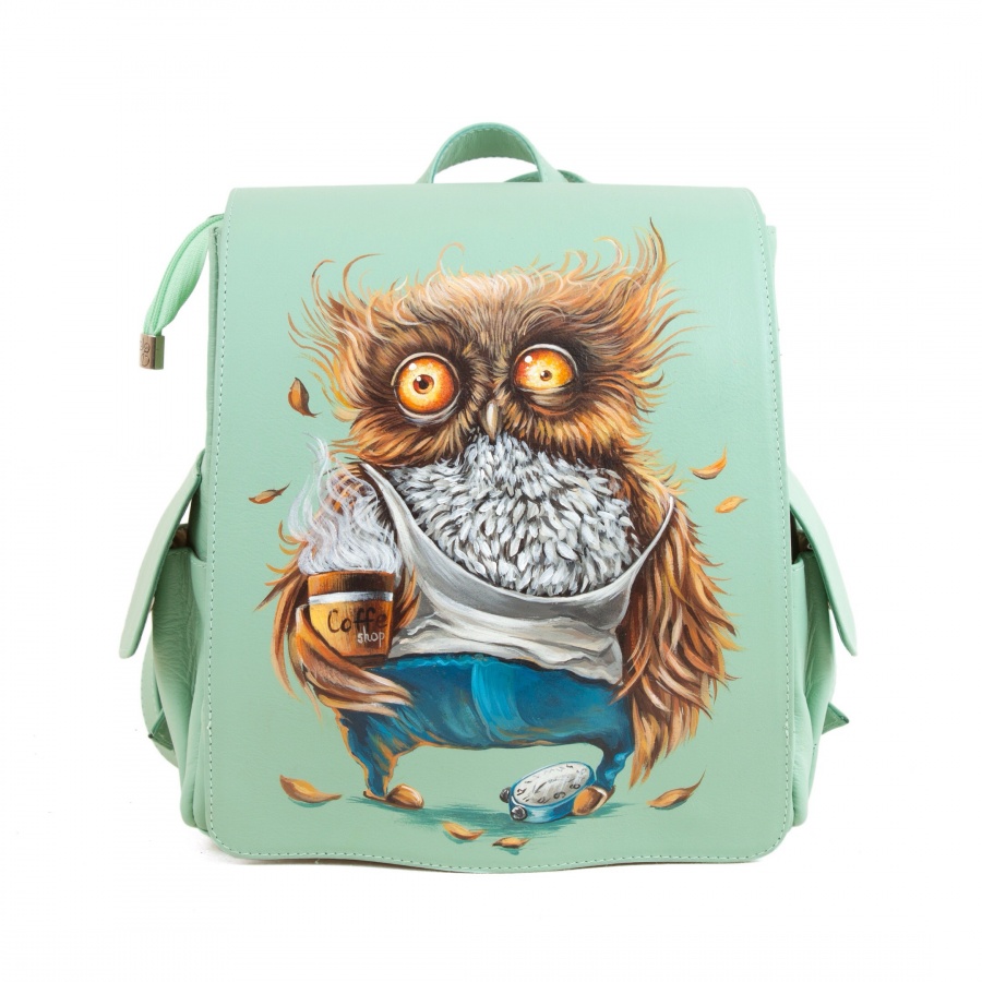 Женский городской рюкзак с карманами и росписью "Утренняя сова" ручной работы на заказ