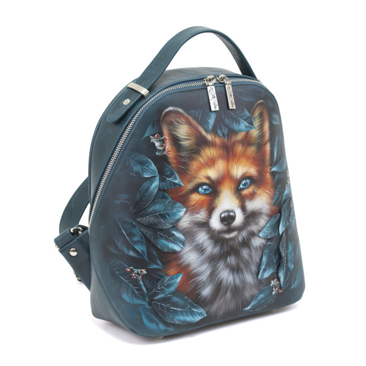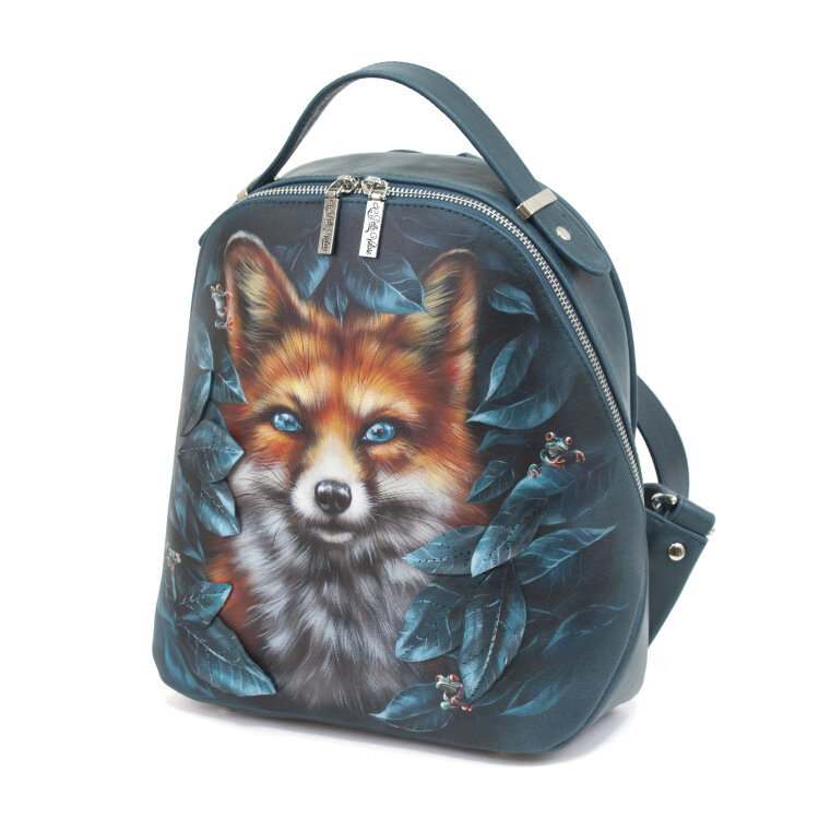 Красивый женский рюкзак с росписью "Бирюзовая лиса" ручной работы на заказ | Купить в Sumnizza