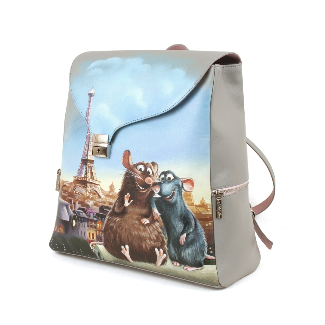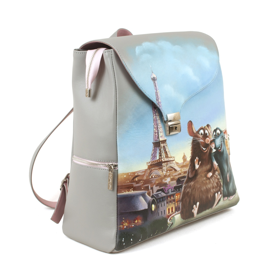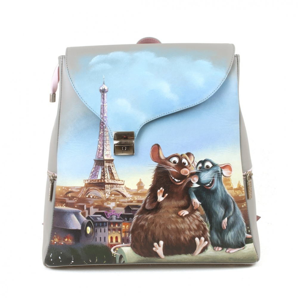Женский кожаный рюкзак с рисунком ручной работы "Рататуй"