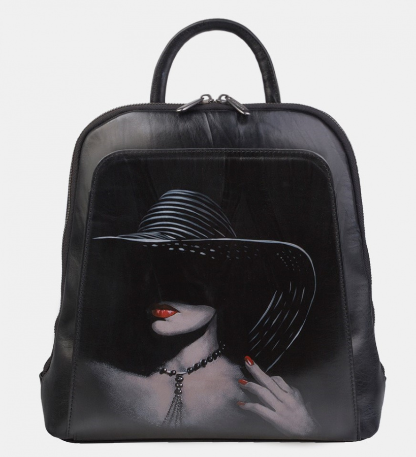 Уникальный кожаный женский рюкзак с рисунком ручной работы