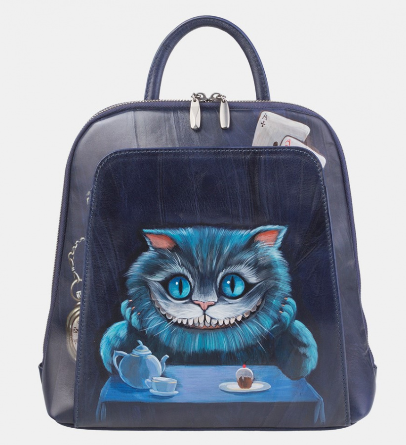 Женский рюкзак с рисунком по коже "Чеширский кот"