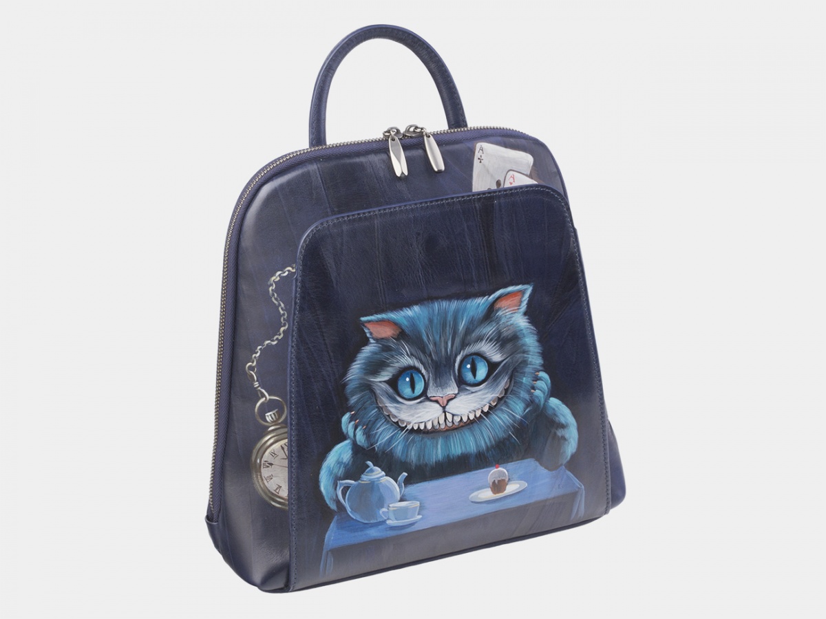 Женский рюкзак с рисунком по коже "Чеширский кот" ручной работы на заказ | Купить в Sumnizza