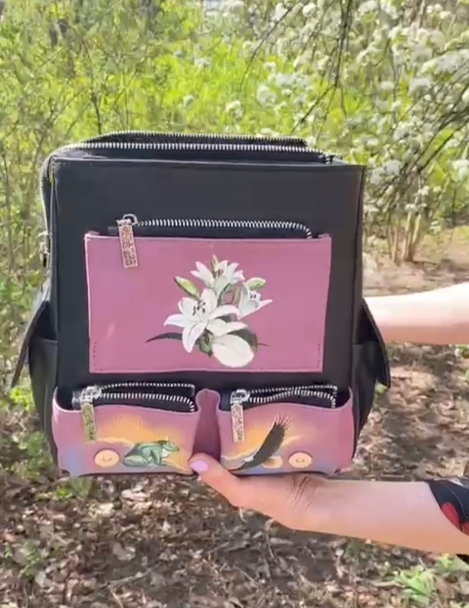Мы создадим кожаную женскую сумку-рюкзак специально для вас. Ваша роспись ручной работы сделает его единственным и неповторимым.