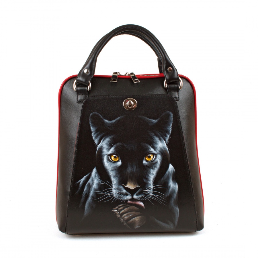 Купить Кожаная сумка-рюкзак с рисунком "Черная пантера" ручной работы на заказ