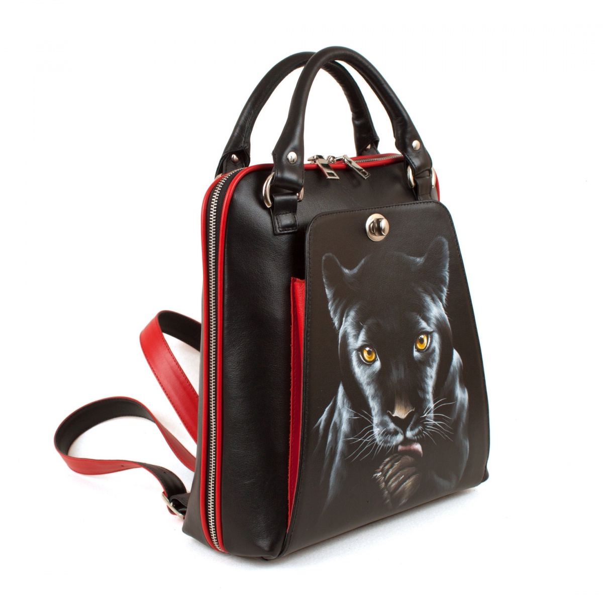 Кожаная сумка-рюкзак с рисунком "Черная пантера"