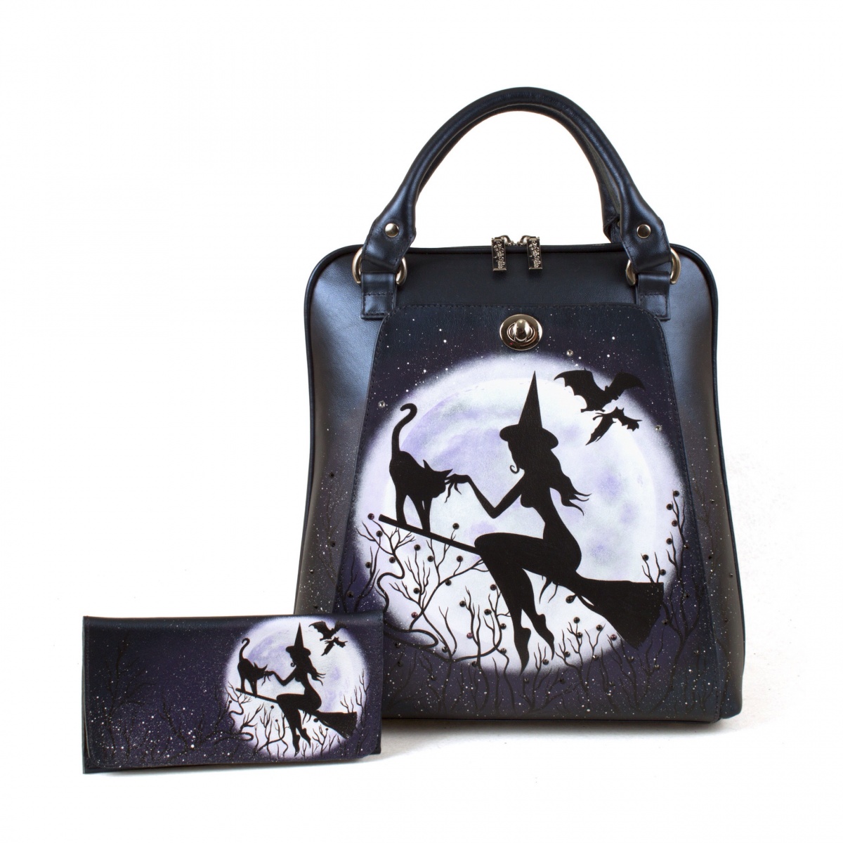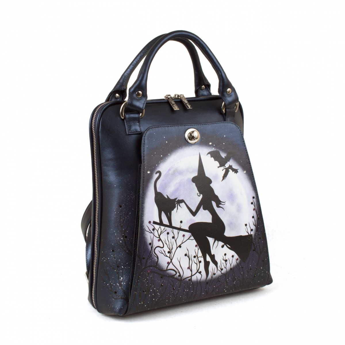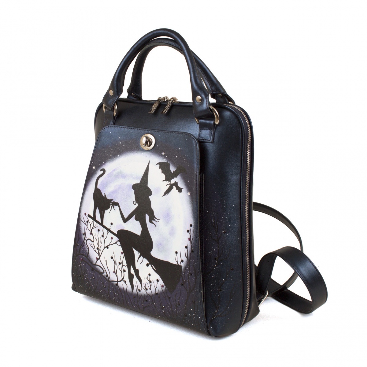 Кожаная сумка рюкзак с рисунком "Полнолуние"