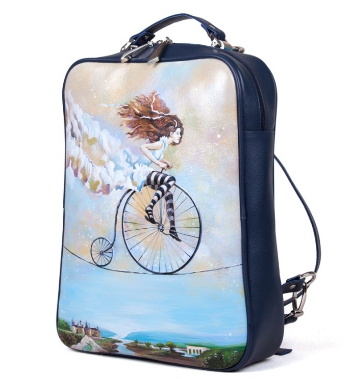 • Эксклюзивный рисунок на сумке-рюкзаке — профессиональные художники расписывают кожаные сумки акриловыми красками, как холст. Каждая роспись уникальна.
