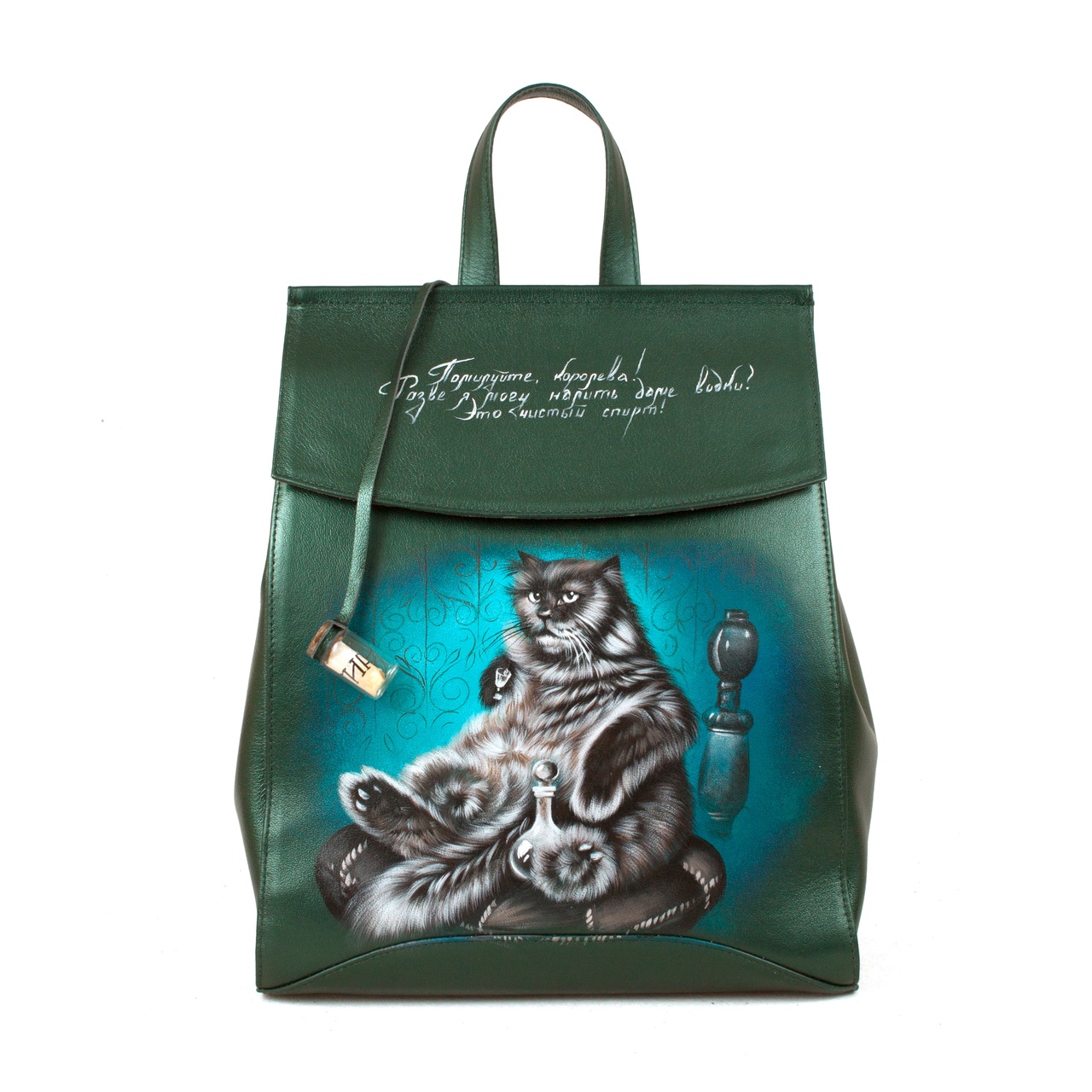 Купить Кожаная сумка рюкзак с росписью "Кот Бегемот" ручной работы на заказ
