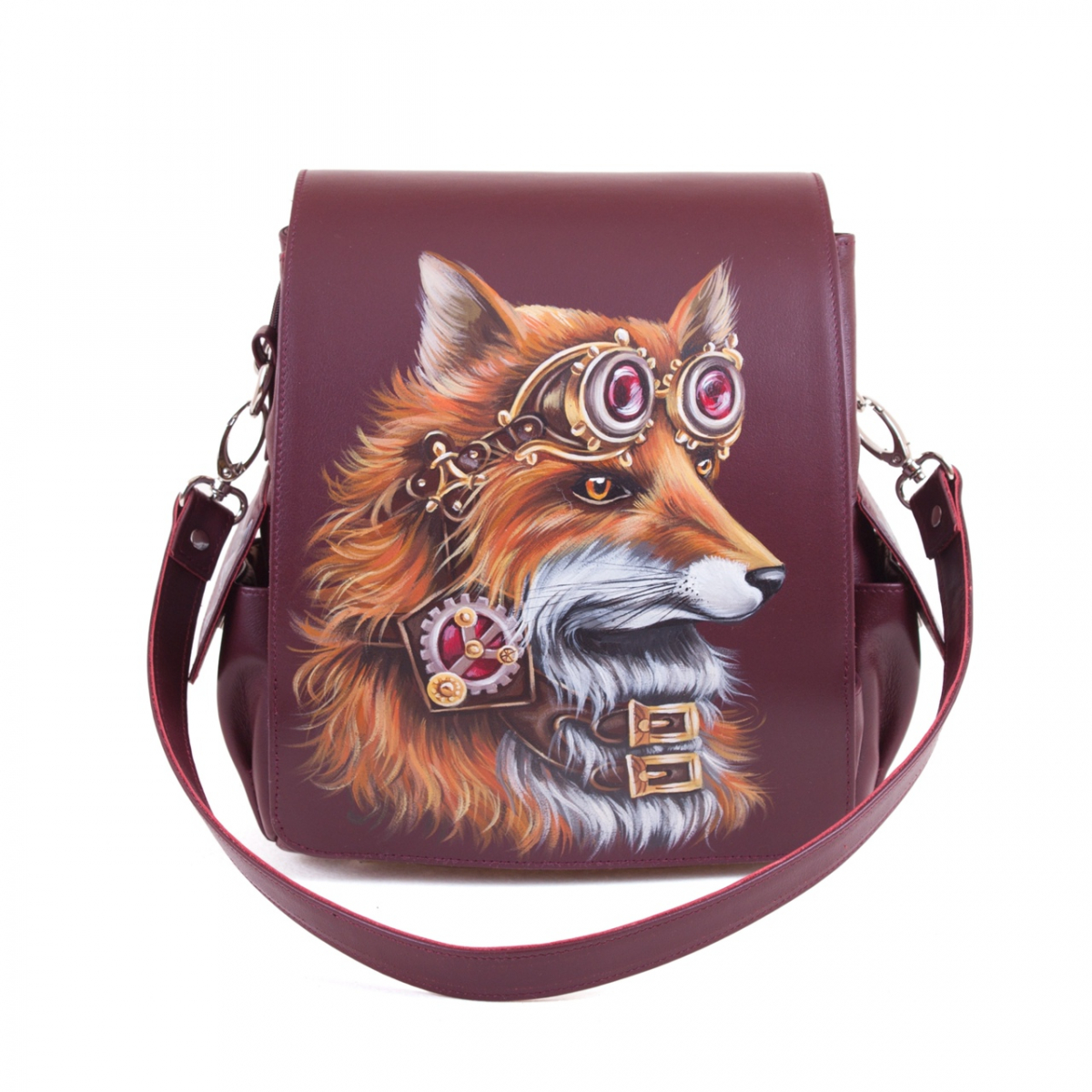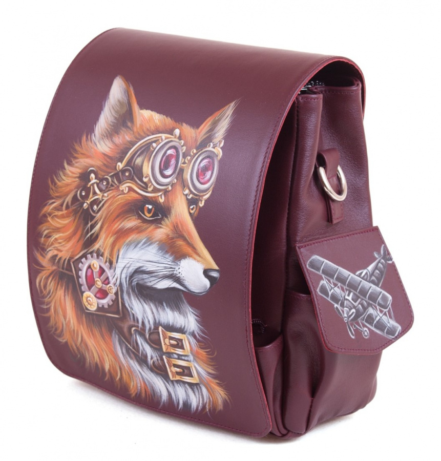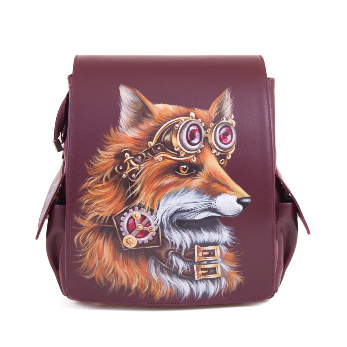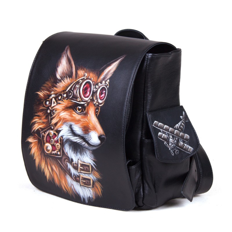 Кожаная сумка рюкзак с росписью "Лиса пилот" ручной работы на заказ