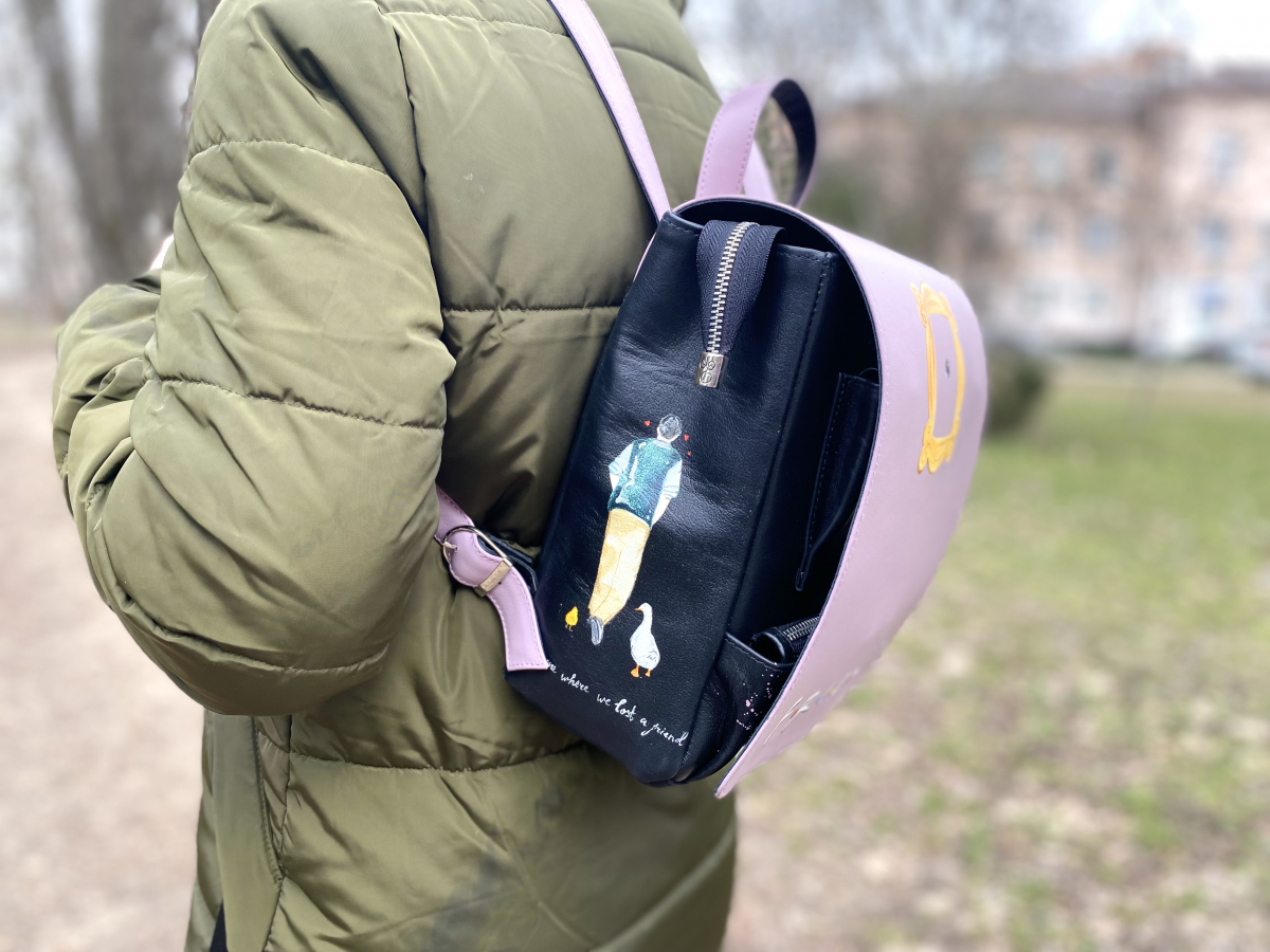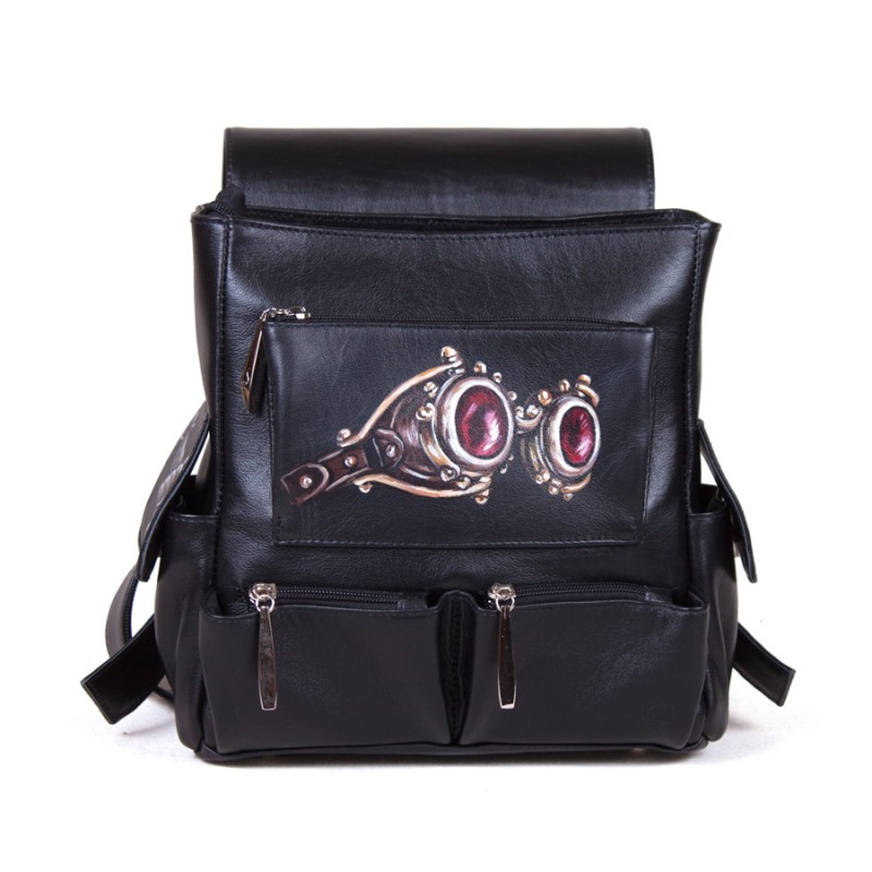 • Эксклюзивный рисунок на сумке-рюкзаке — профессиональные художники расписывают кожаные сумки акриловыми красками, как холст. Каждая роспись уникальна.