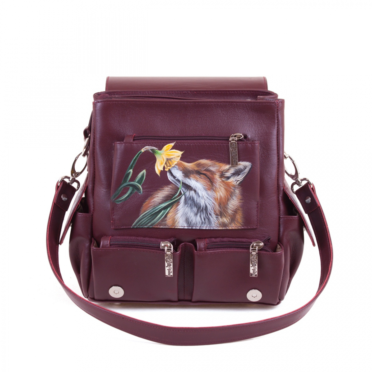 Кожаная сумка рюкзак с росписью "Лиса пилот"