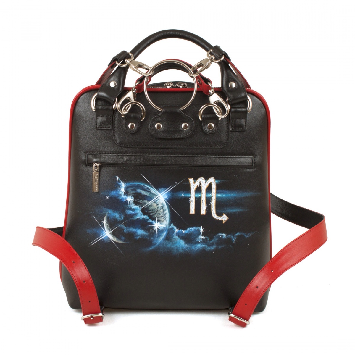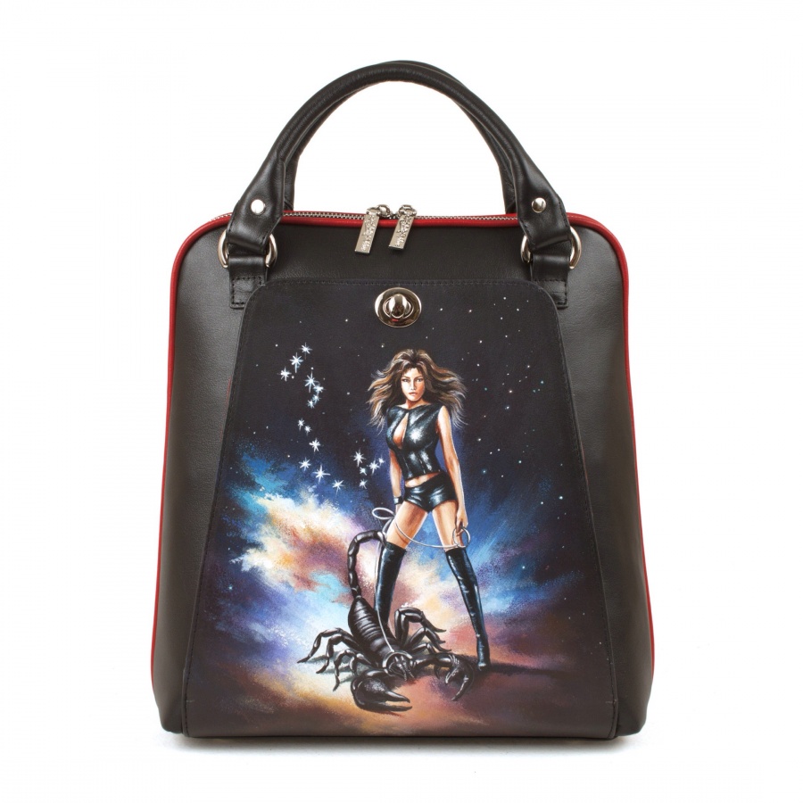 Кожаная сумка-рюкзак с рисунком "Скорпион"