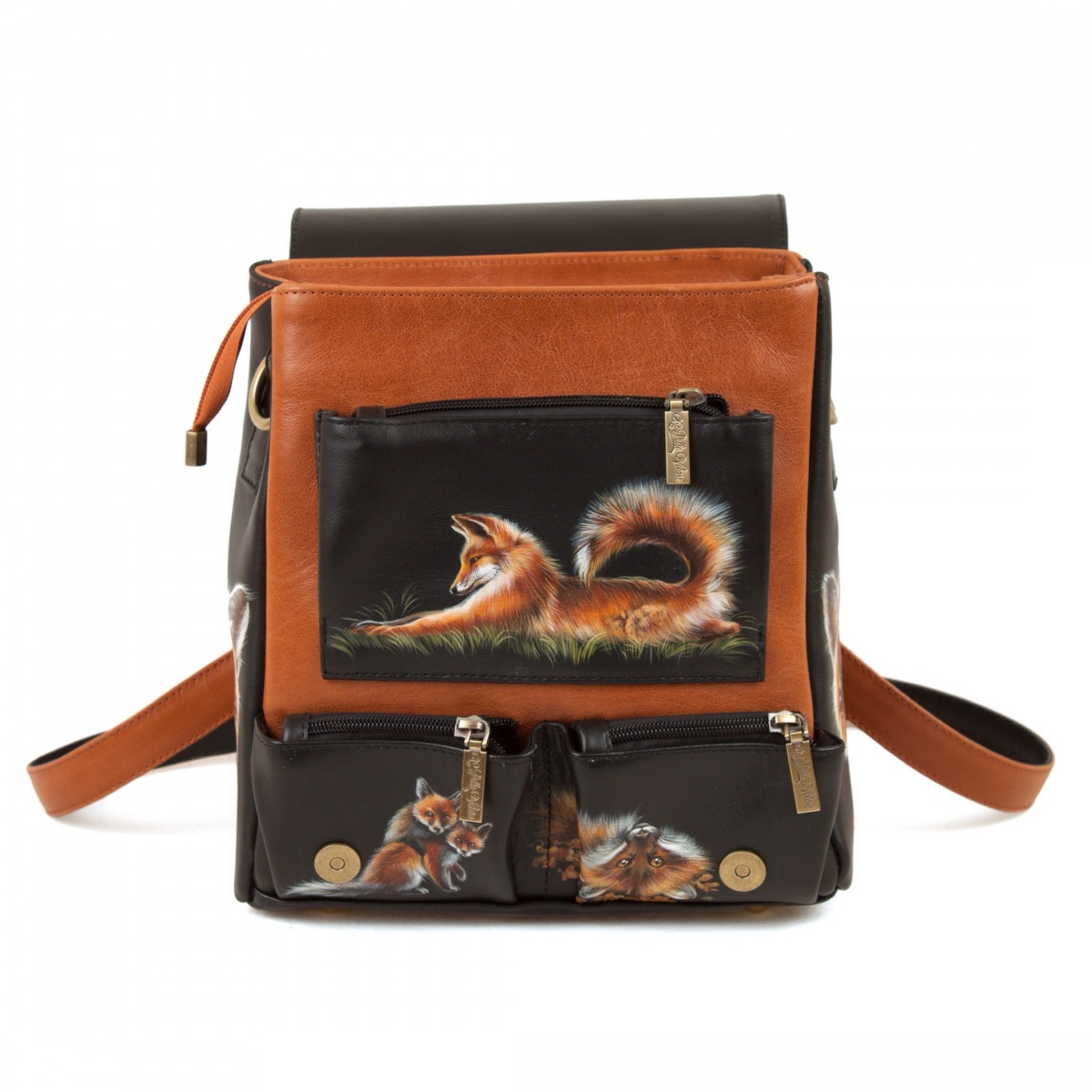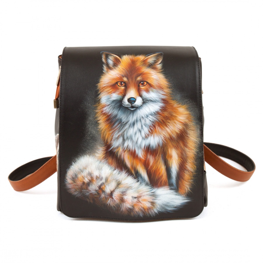 Кожаная сумка-рюкзак с рисунком лисы "Рыжая лисичка"