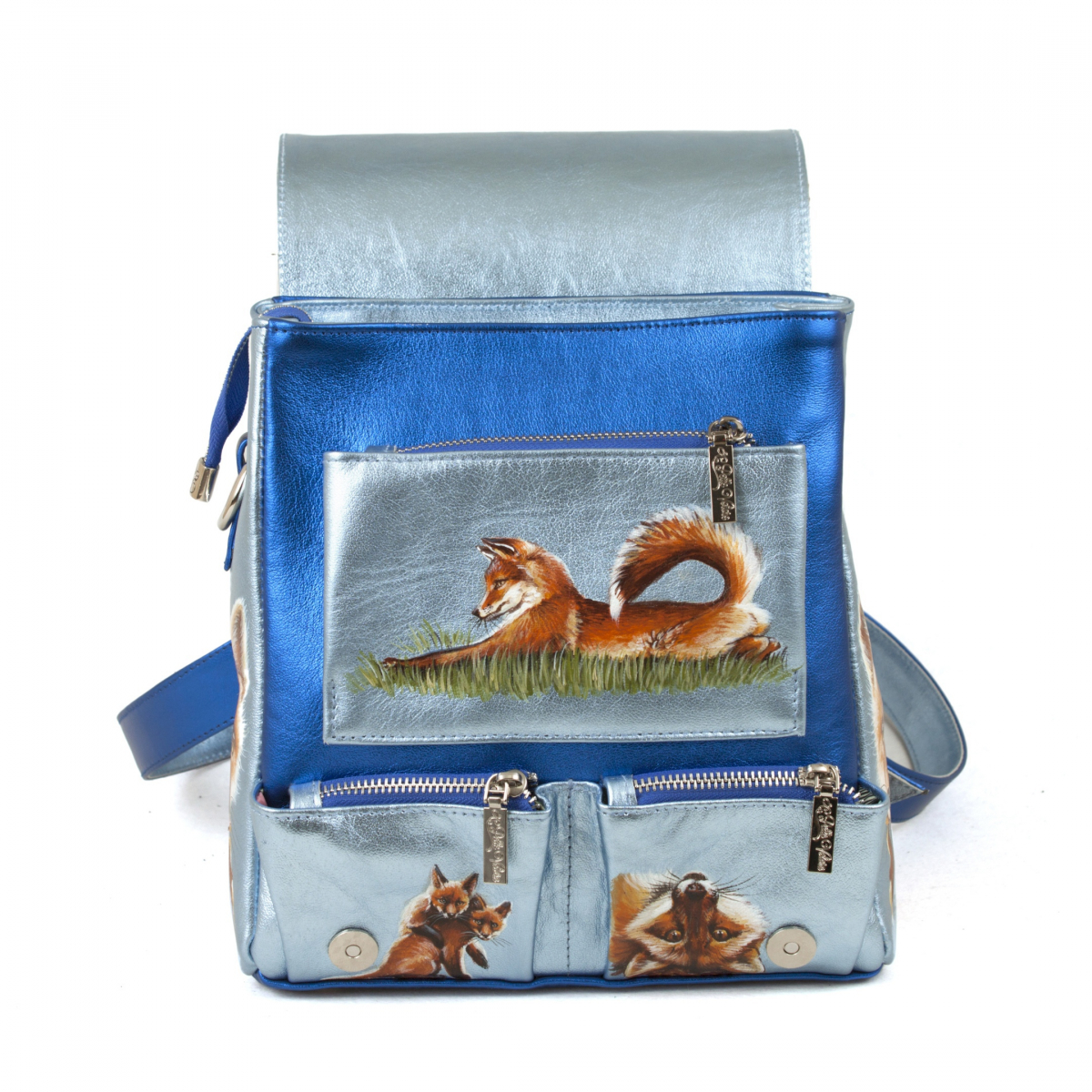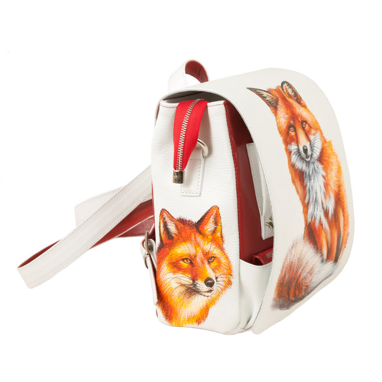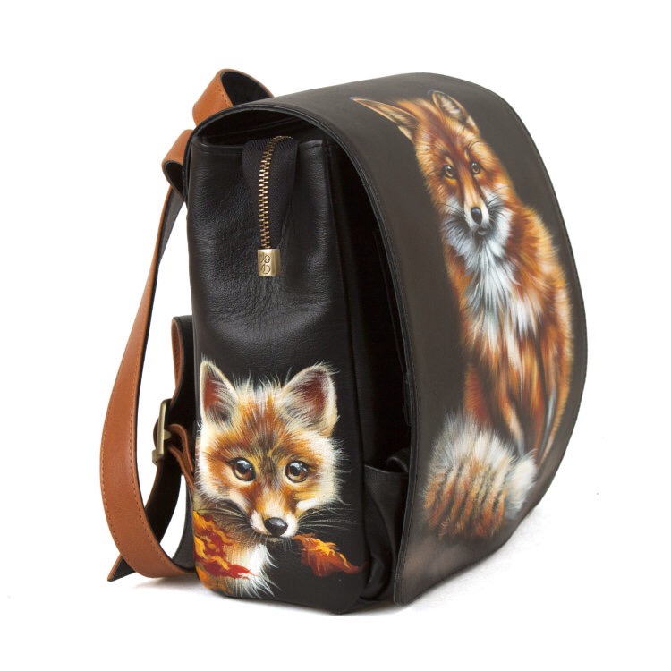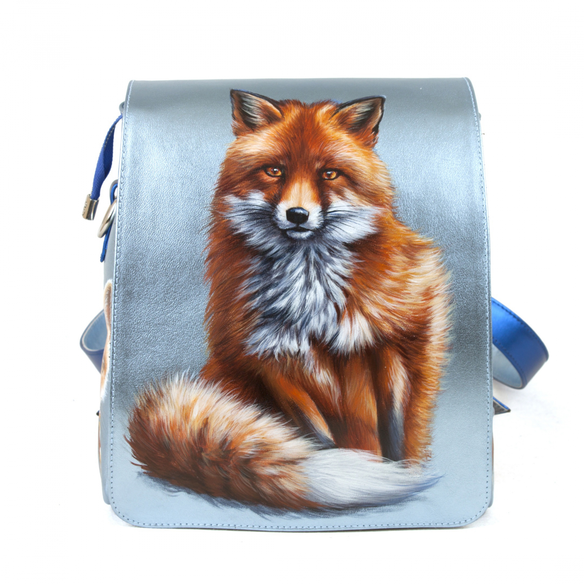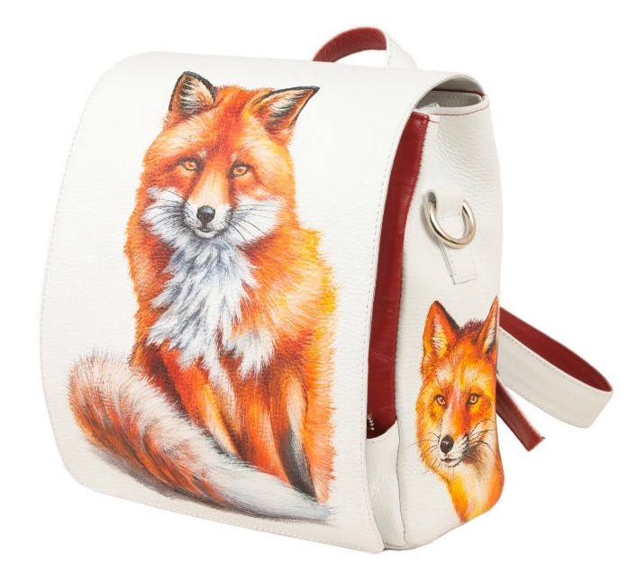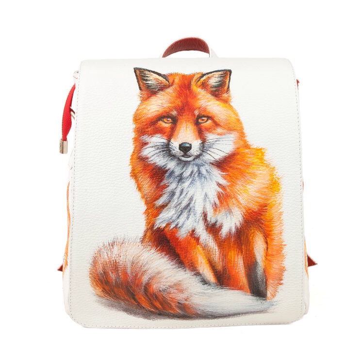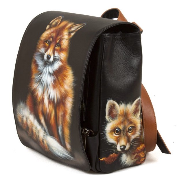 Кожаная сумка-рюкзак с рисунком лисы "Рыжая лисичка" ручной работы на заказ