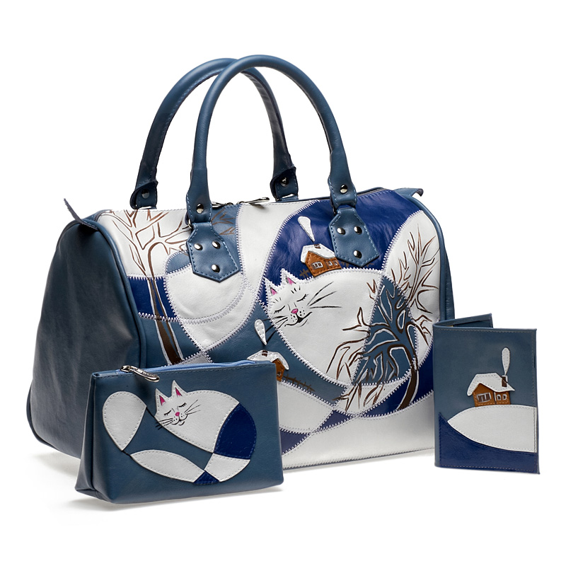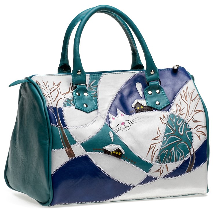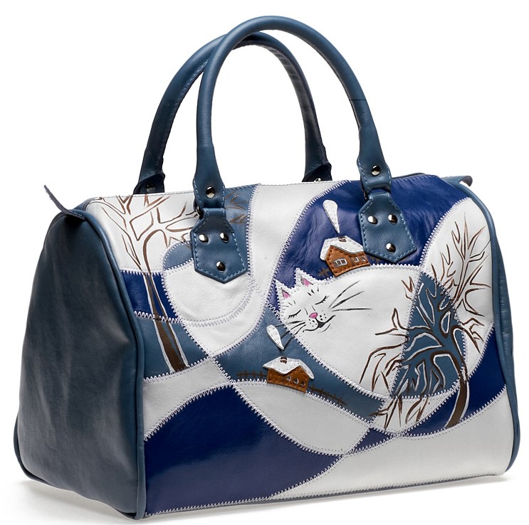 Большая женская сумка с аппликацией "Кот в сугробе" - кожаный дорожный саквояж ручной работы с рисунком на заказ |  Sumnizza
