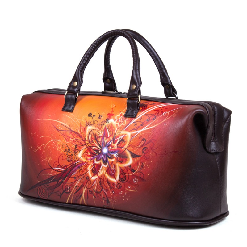 • Стильный рисунок — профессиональные художники расписывают кожаные женские сумки саквояжи акриловыми красками, как холст. Каждая роспись уникальна.
