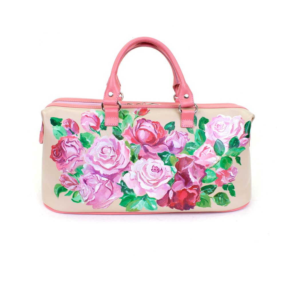 Женский саквояж из натуральной кожи с рисунком "Розовый цвет" ручной работы с рисунком на заказ | Купить в Sumnizza