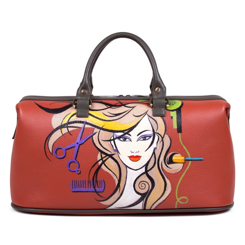 Удлиненный саквояж "Саквояж парикмахера" ручной работы с рисунком на заказ | Купить в Sumnizza