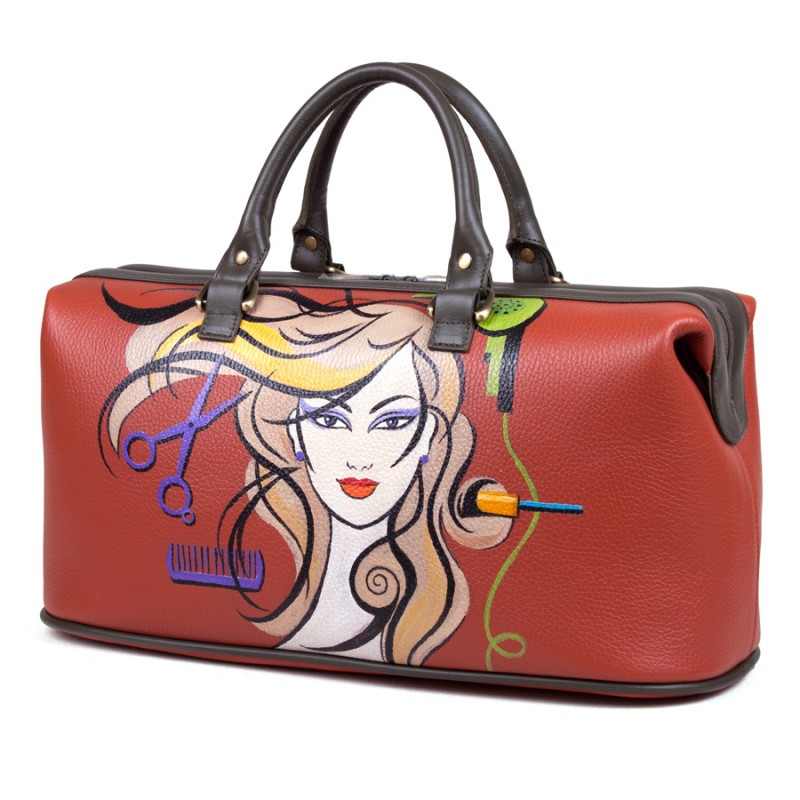 Удлиненный саквояж "Саквояж парикмахера" с рисунком ручной работы на заказ
