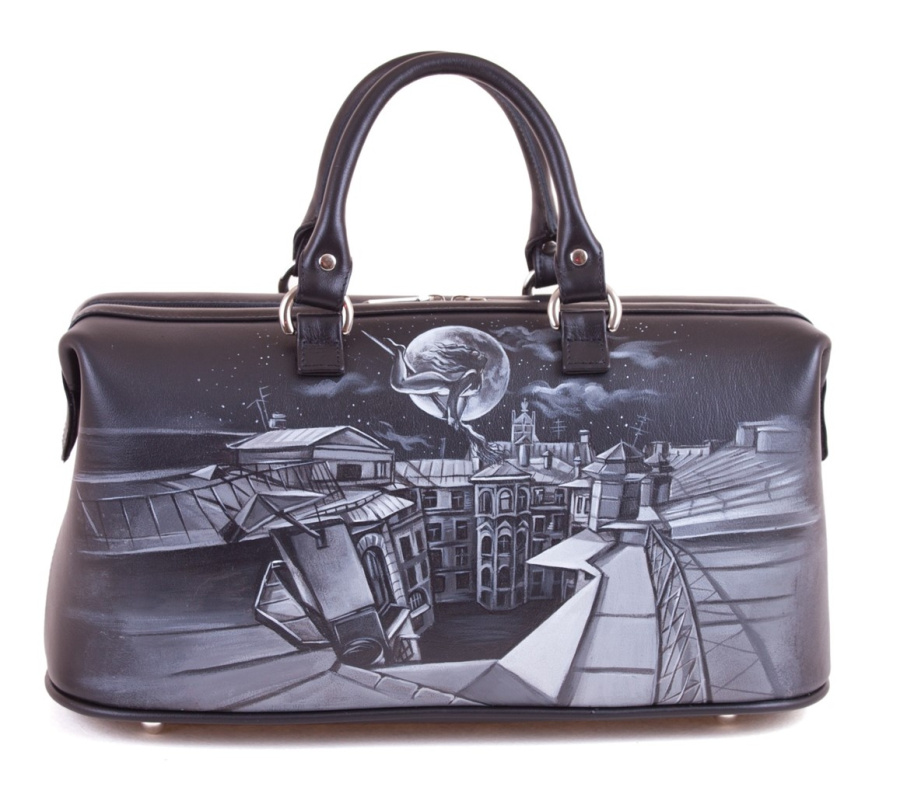 Женская сумка саквояж из кожи "Маргарита над Москвой" ручной работы с рисунком на заказ | Купить в Sumnizza