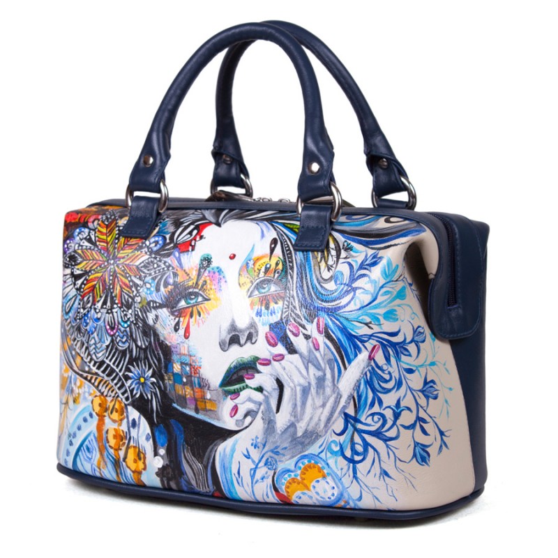 • Стильный рисунок — профессиональные художники расписывают кожаные женские сумки саквояжи акриловыми красками, как холст. Каждая роспись уникальна.