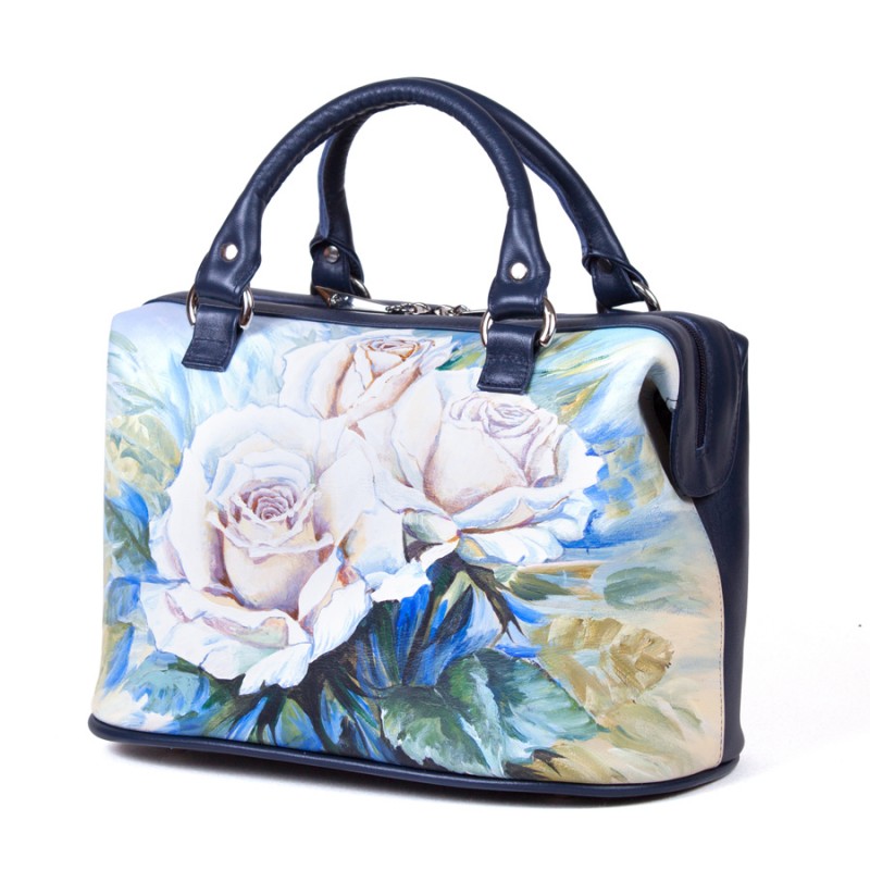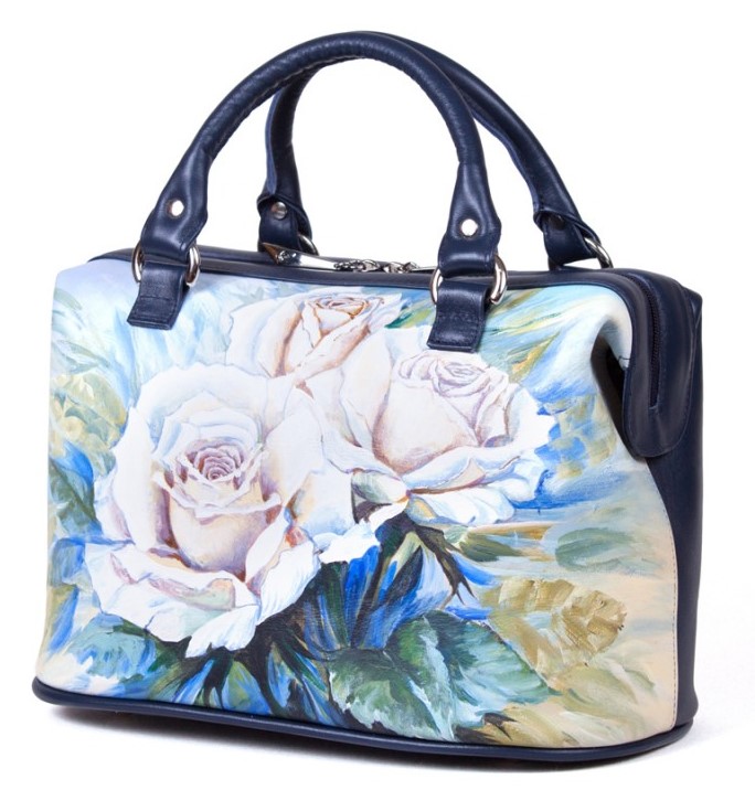 • Стильный рисунок — профессиональные художники расписывают кожаные женские сумки саквояжи акриловыми красками, как холст. Каждая роспись уникальна.
