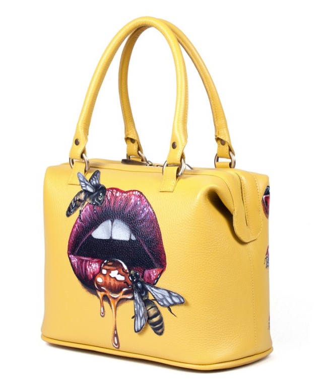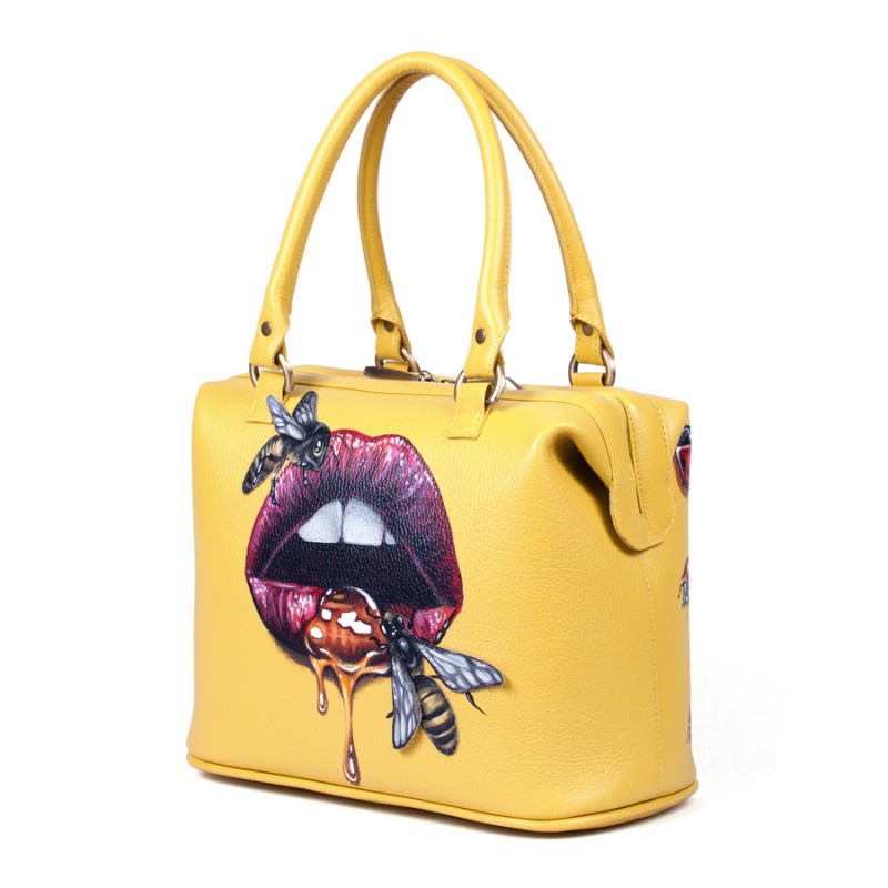 Женский кожаный саквояж с росписью "Сладкие губы"