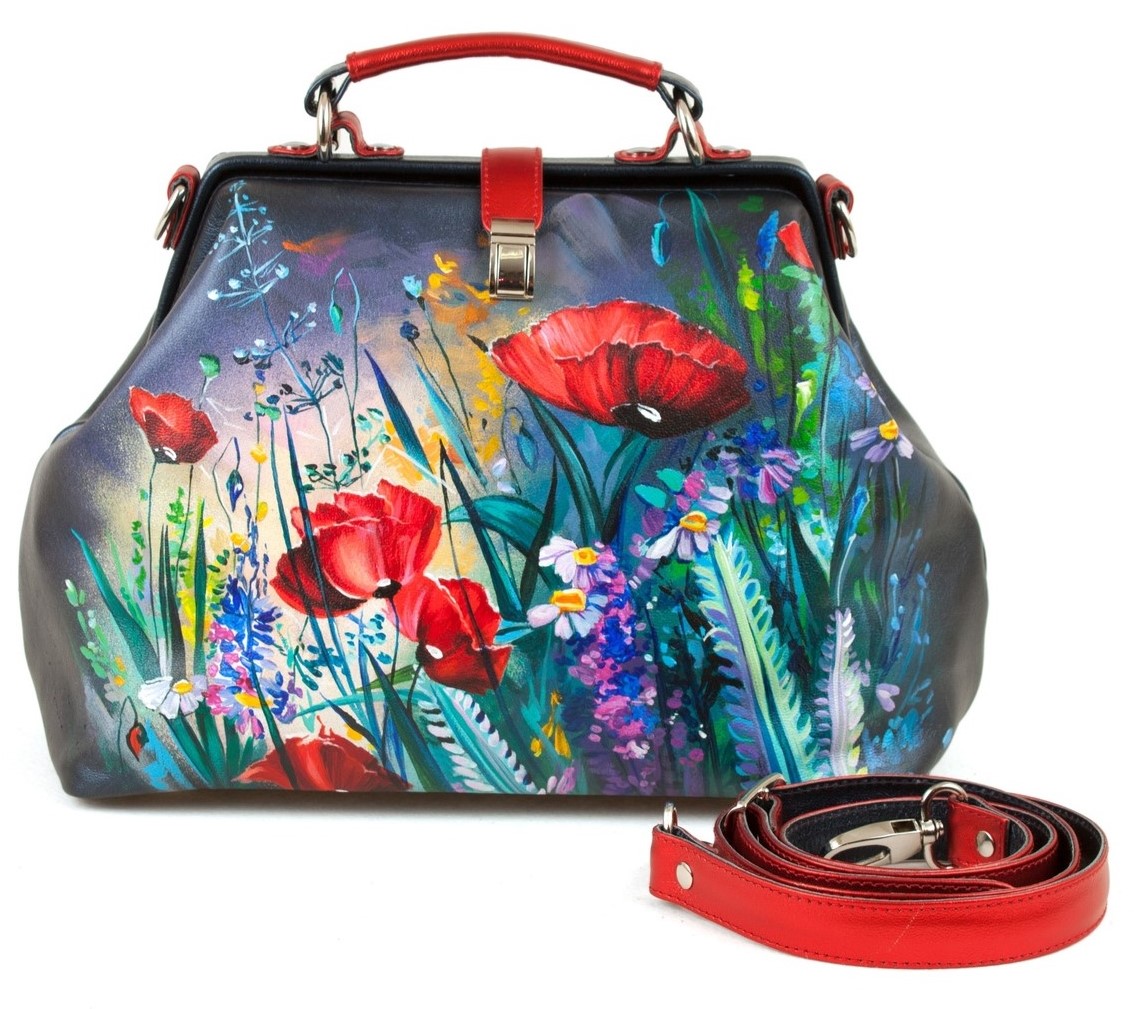 • Стильный рисунок — профессиональные художники расписывают кожаные женские сумки саквояжи акриловыми красками, как холст. Каждая роспись уникальна.