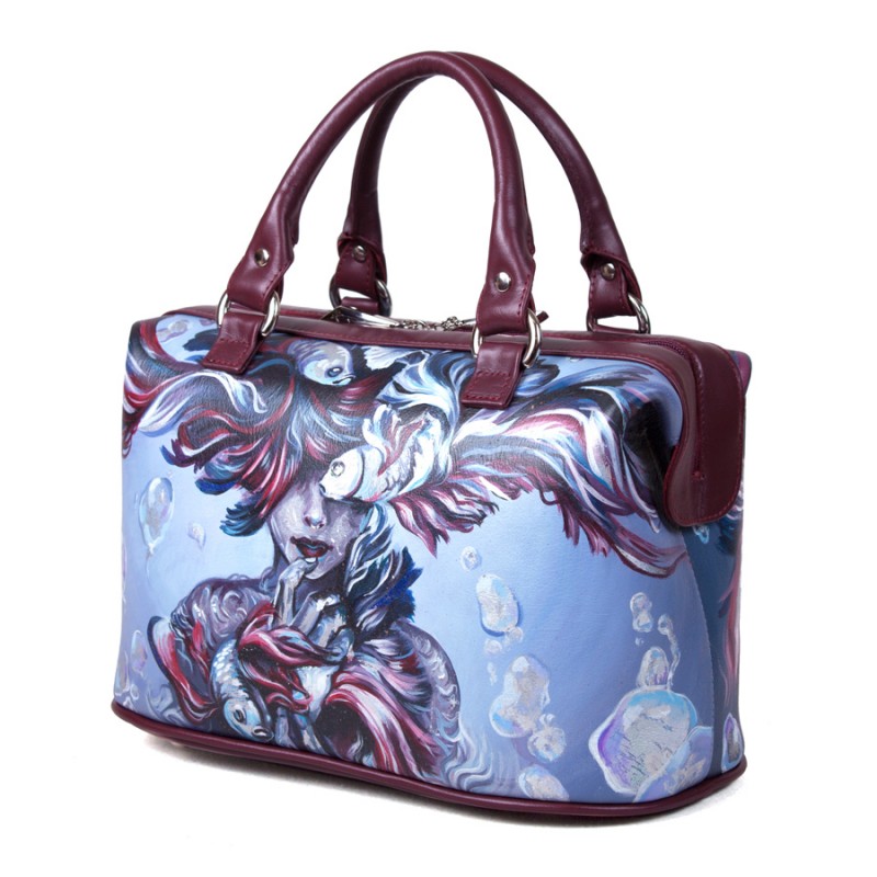 Закажите свою уникальную кожаную женскую сумку саквояж с рисунком ручной работы!
