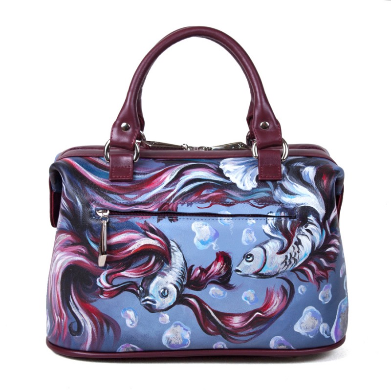 • Стильный рисунок — профессиональные художники расписывают кожаные женские сумки саквояжи акриловыми красками, как холст. Каждая роспись уникальна.
