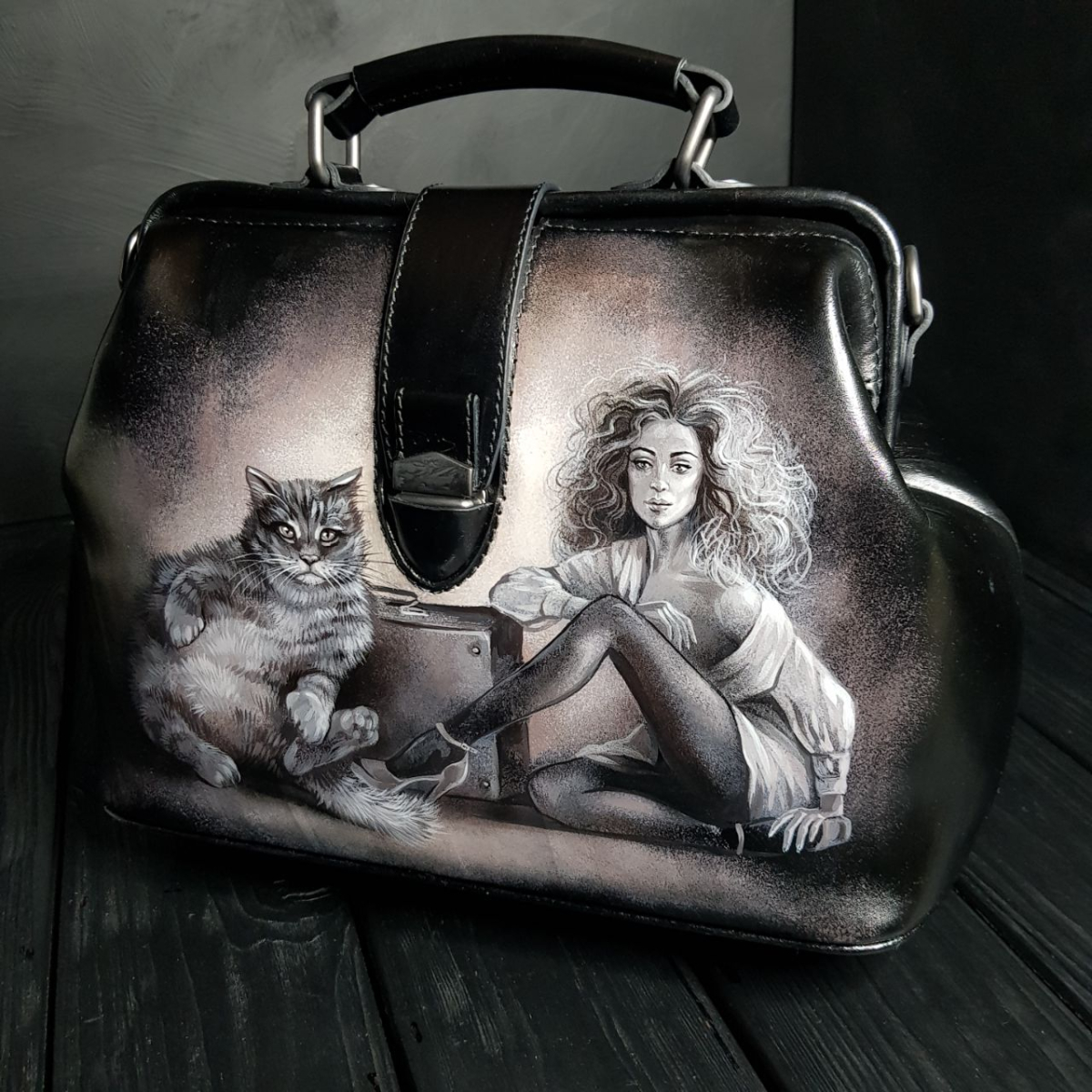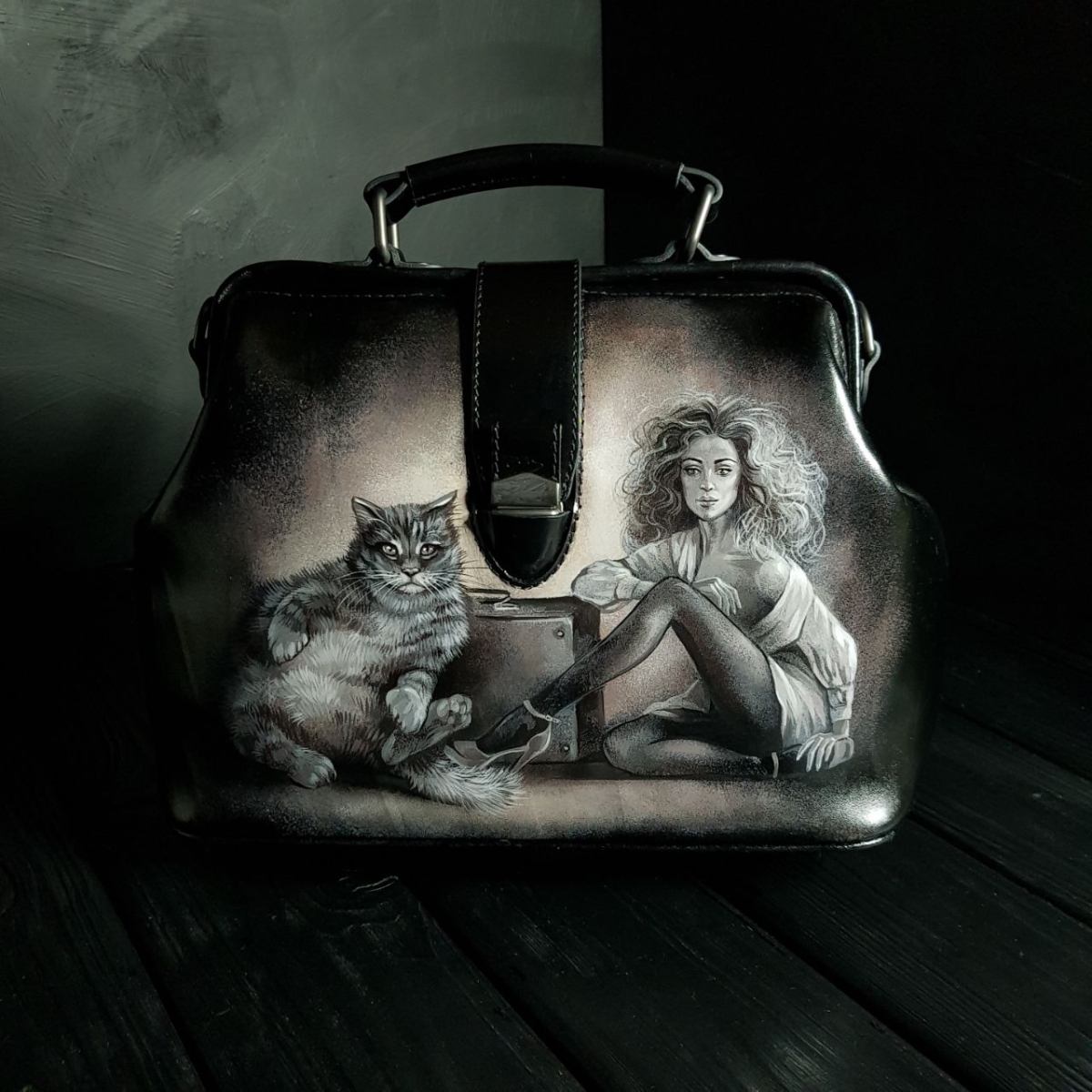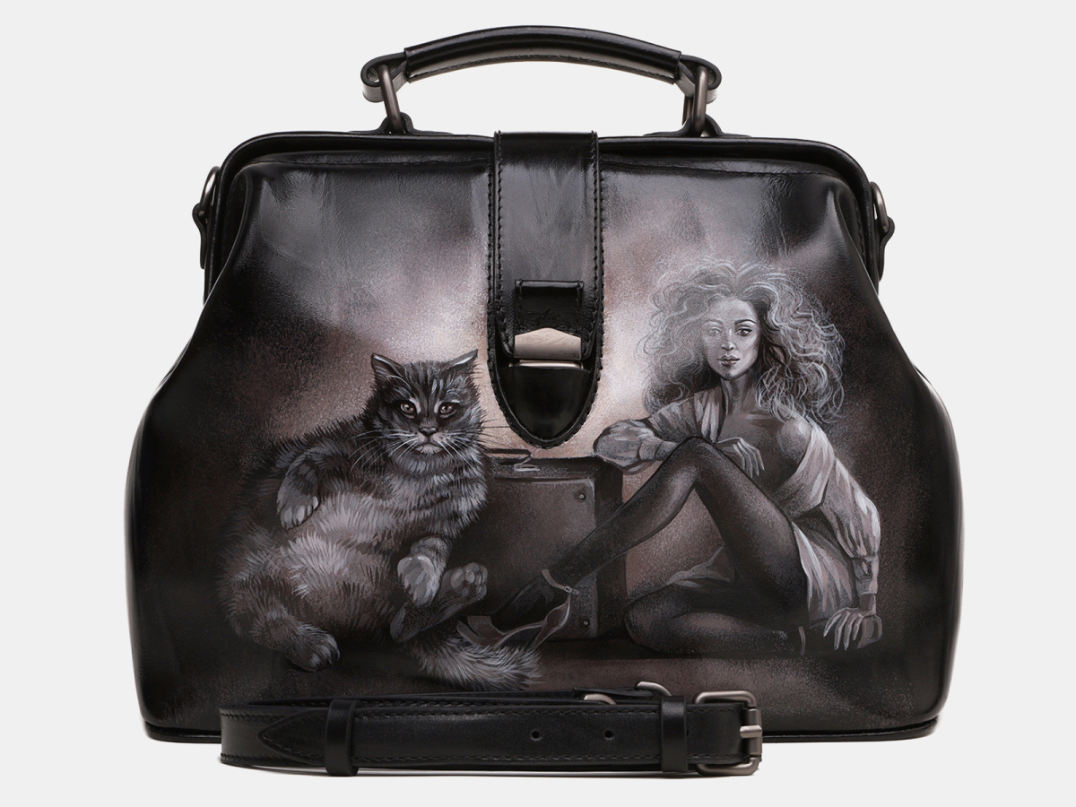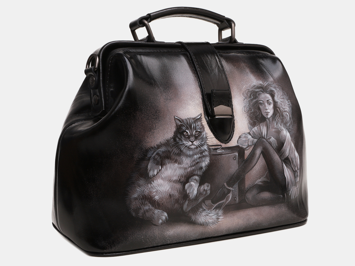 Женский кожаный саквояж "Маргарита и Кот Бегемот" ручной работы на заказ | Купить в Sumnizza