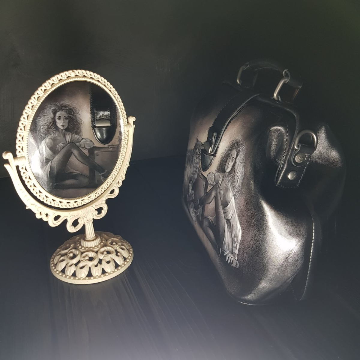 Закажите свою уникальную кожаную женскую сумку саквояж с рисунком ручной работы!