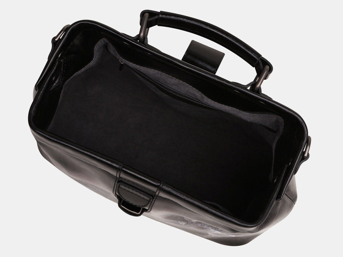 • Удобно носить — используйте как сумку на плечо с помощью ремня, носите в руке за ручку • Продуманная конструкция — полностью раскрывающийся верх женской сумки саквояжа обеспечивает лёгкий доступ к содержимому • Универсальный стиль — сдержанный цвет и изящная роспись ручной работы сочетаются с любым образом