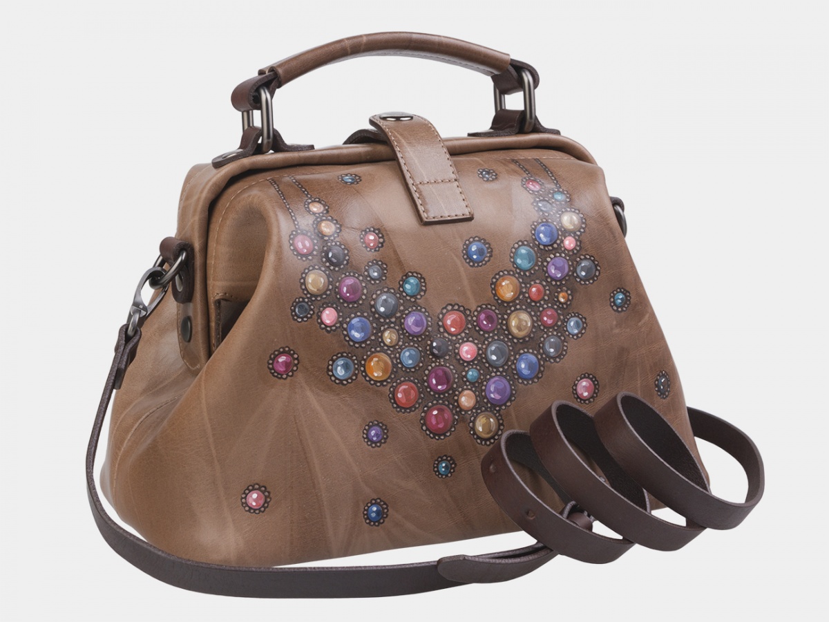 • Стильный рисунок — профессиональные художники расписывают кожаные женские сумки саквояжи акриловыми красками, как холст. Каждая роспись уникальна.